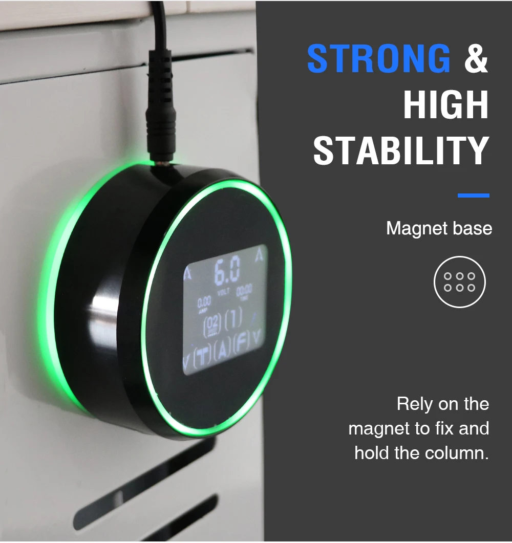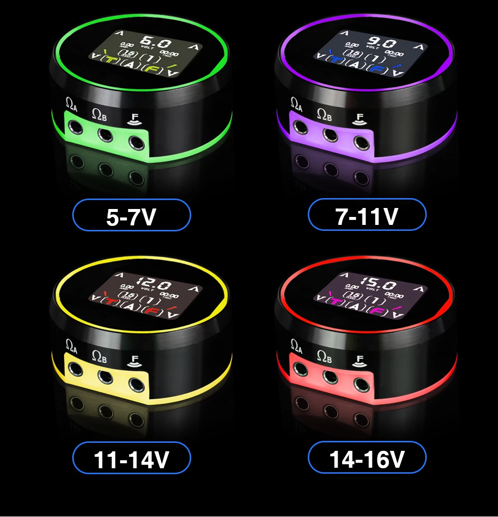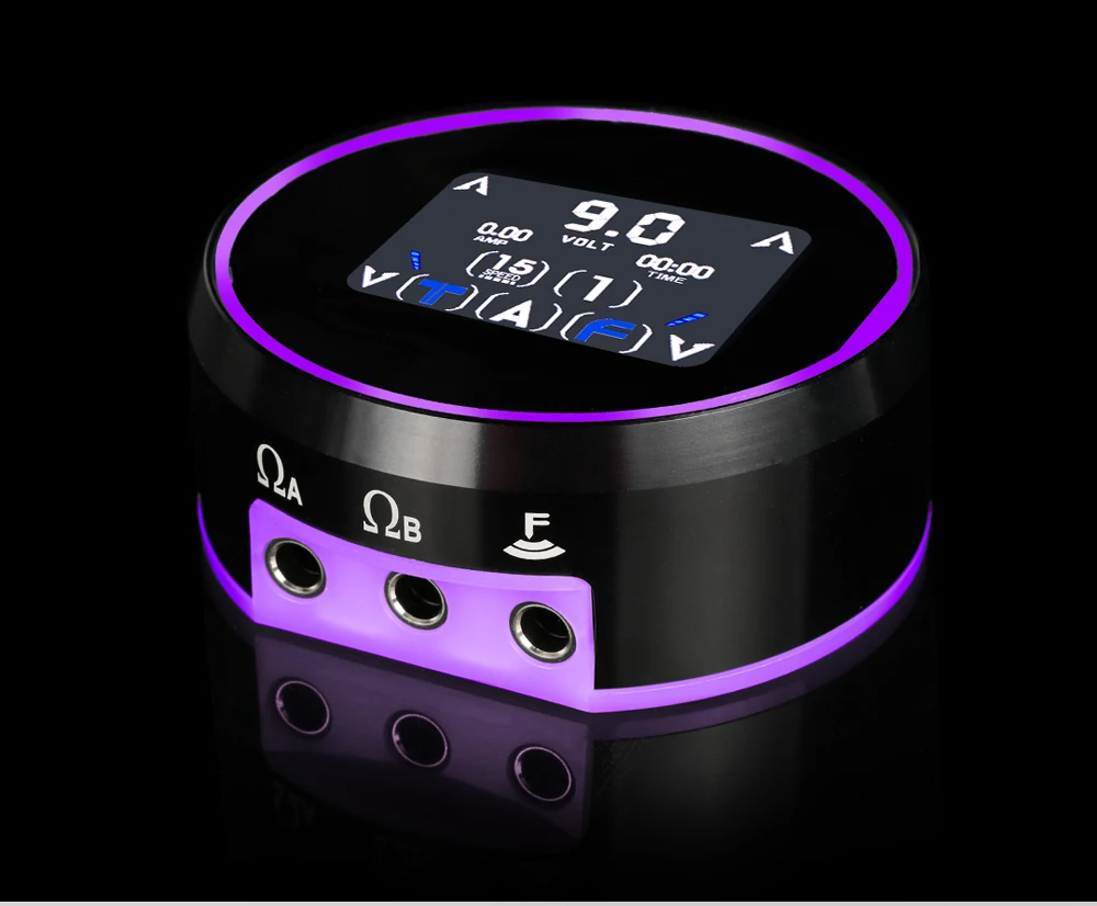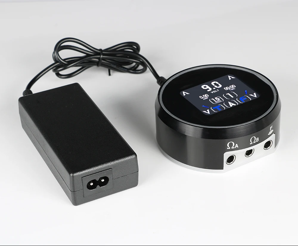 Когда: sreen показывает A, источник питания контролирует татуировочную машину, подключенную к порту A.