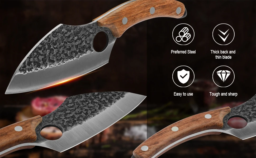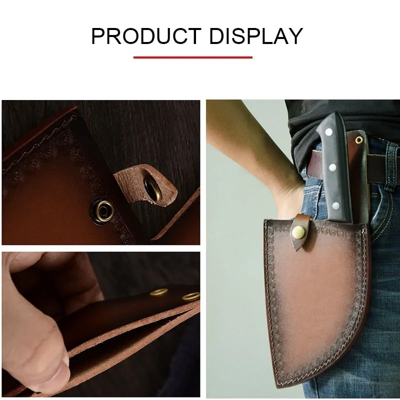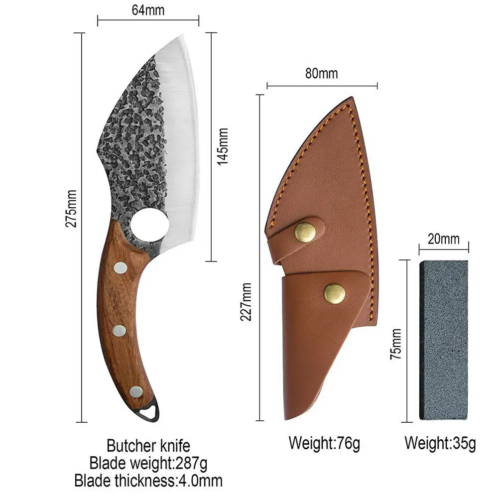 【Convenient To Carry Out】 The butcher knife kitchen comes with an unique leather knife sheath to protect the knife blade, beautiful and more safety, and can be attached to the belt for easy carrying when using outdoor.(There may have a smell of the leather sheath, please hang in a ventilated place for some days when you receive it.)