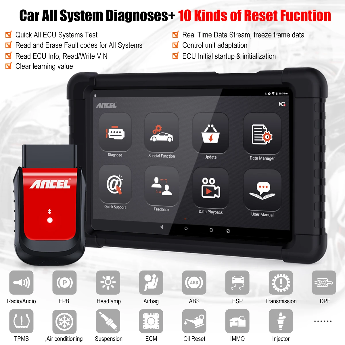 Ancel X6 OBD2 сканер поддерживает автомобили на специальных функциях