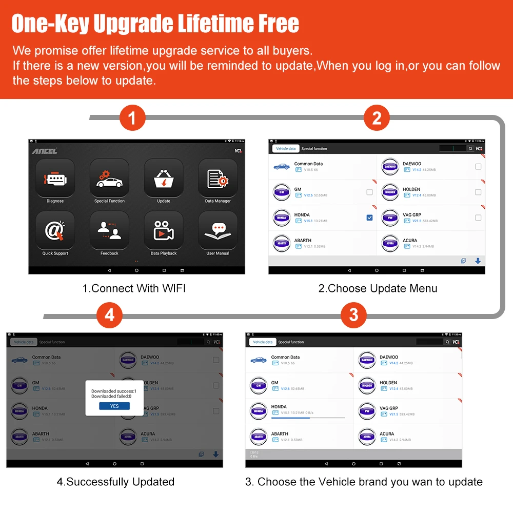 3. Выберите бренд транспортного средства, который вы хотите обновить 4. Успешно обновлено