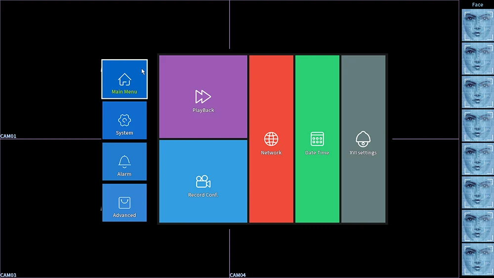 8CH цифровое меню (8CH поддерживает только AHD 5MP-N,XVI 5MP камеру, не поддерживает AHD 5MP камеру)