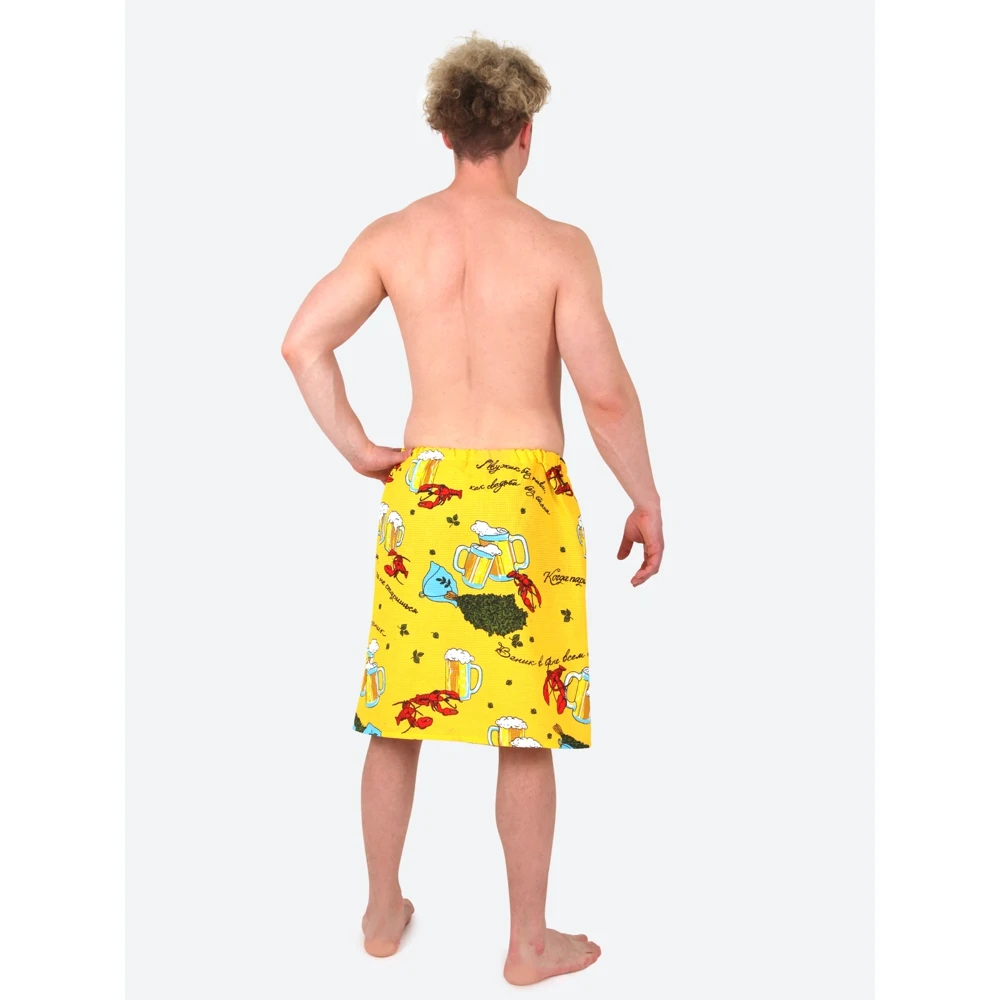 Килт/накидка для бани и сауны С ЛЕГКИМ ПАРОМ 150х60 см., вафельная 100% хлопок, усиленная липучка, желтый