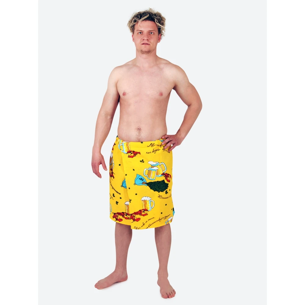 Килт мужской для бани и сауны, из высококачественного 100% хлопка с тематическим рисунком. Незаменимый и удобный элемент одежды для бани, сауны, SPA. Ткань отлично впитывает пот, влагу, быстро сохнет, гипоаллергенна. Универсальный размер изделия 1500х600 мм позволяет использовать его на разный рост и размер (М-XXХL), регулируемая усиленная длинная и широкая липучка надежно фиксирует килт на бедрах. Широкая резинка дает дополнительный комфорт и обеспечивает хорошую посадку. Отличный универсальный мужской подарок и подходит всем: папе, брату, мужу, сыну, внуку, дедушке, другу, начальнику, коллеге, директору для любого повода и памятных дней - День рождения, Новый год, Рождество, 23 февраля.