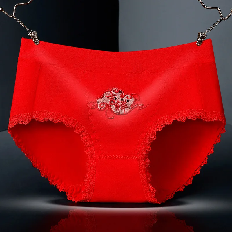 Красные брюки со средней талией, с надписью «Good Luck FU JIXIANG», хлопковые штаны для девочек-подростков, нижнее белье с изображением тигра, китайских персонажей, красные трусы