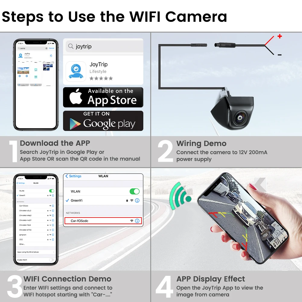 Первая 5G запасная камера WIFI номерного знака --- по сравнению с другими 2,4G WIFi резервная камера s, наша 5G WIFI резервная камера значительно улучшила Производительность: Более быстрая скорость подключения, более стабильная передача сигнала, нет замораживания изображения. Разрешение 1280*720p, угол обзора 165 градусов, водонепроницаемость IP68. Может применяться для автомобилей, кемперов, внедорожников, RV, седанов и т. Д., которые могут обеспечить источник питания 9-16 В 200 мА.