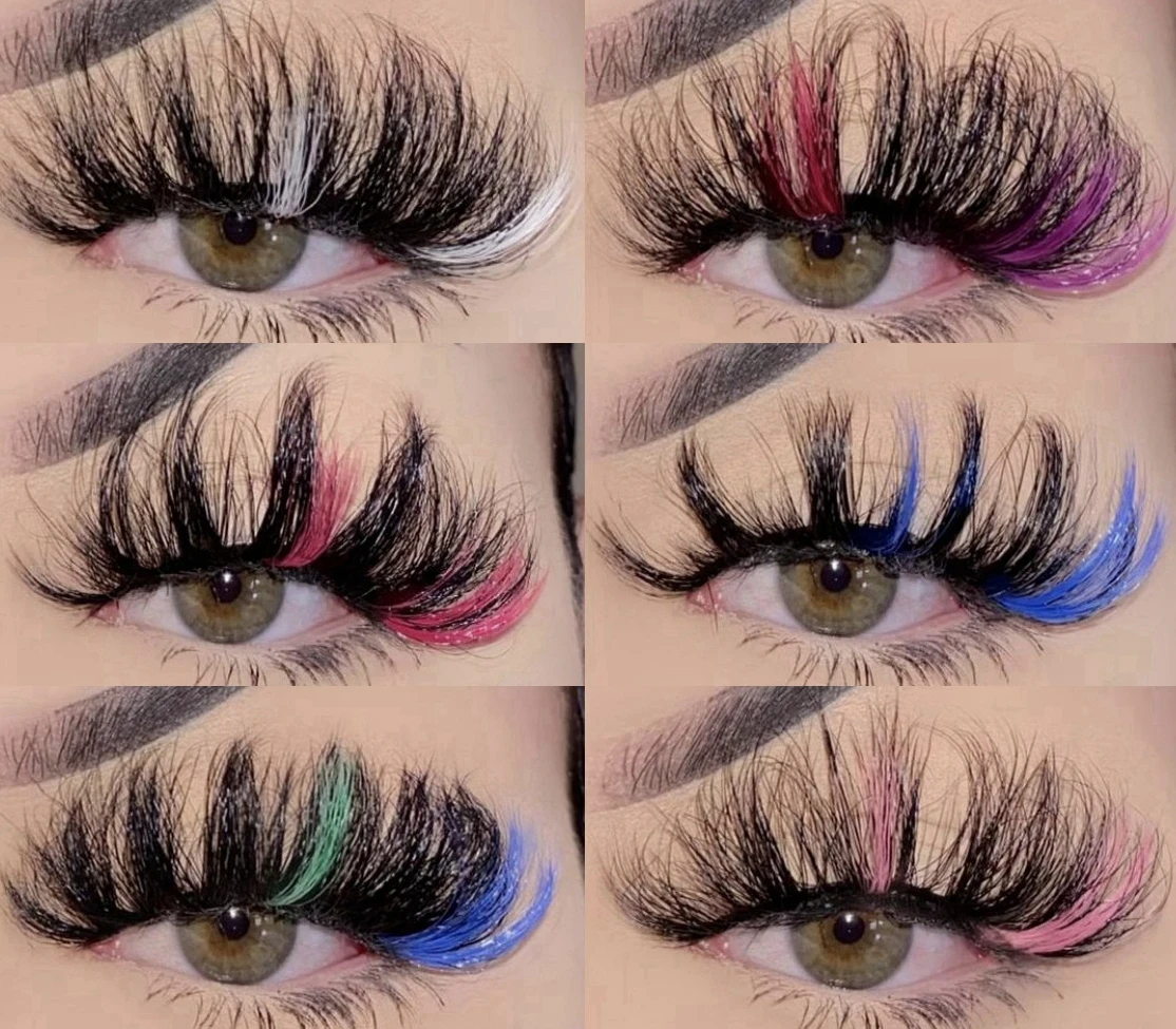 Цветные норковые ресницы 25 мм оптом пушистые драматические красные белые синие микс Омбре мягкие разноцветные радужные ресницы вечерние ресницы