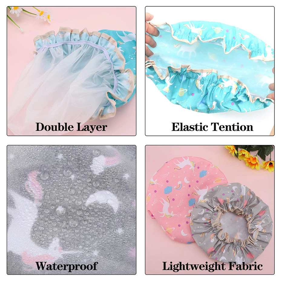 Единорог шапочки для душа двухслойные водонепроницаемые шапочки для ванной многоразовые эластичные банные шапки идеально подходят для женщин и девочек