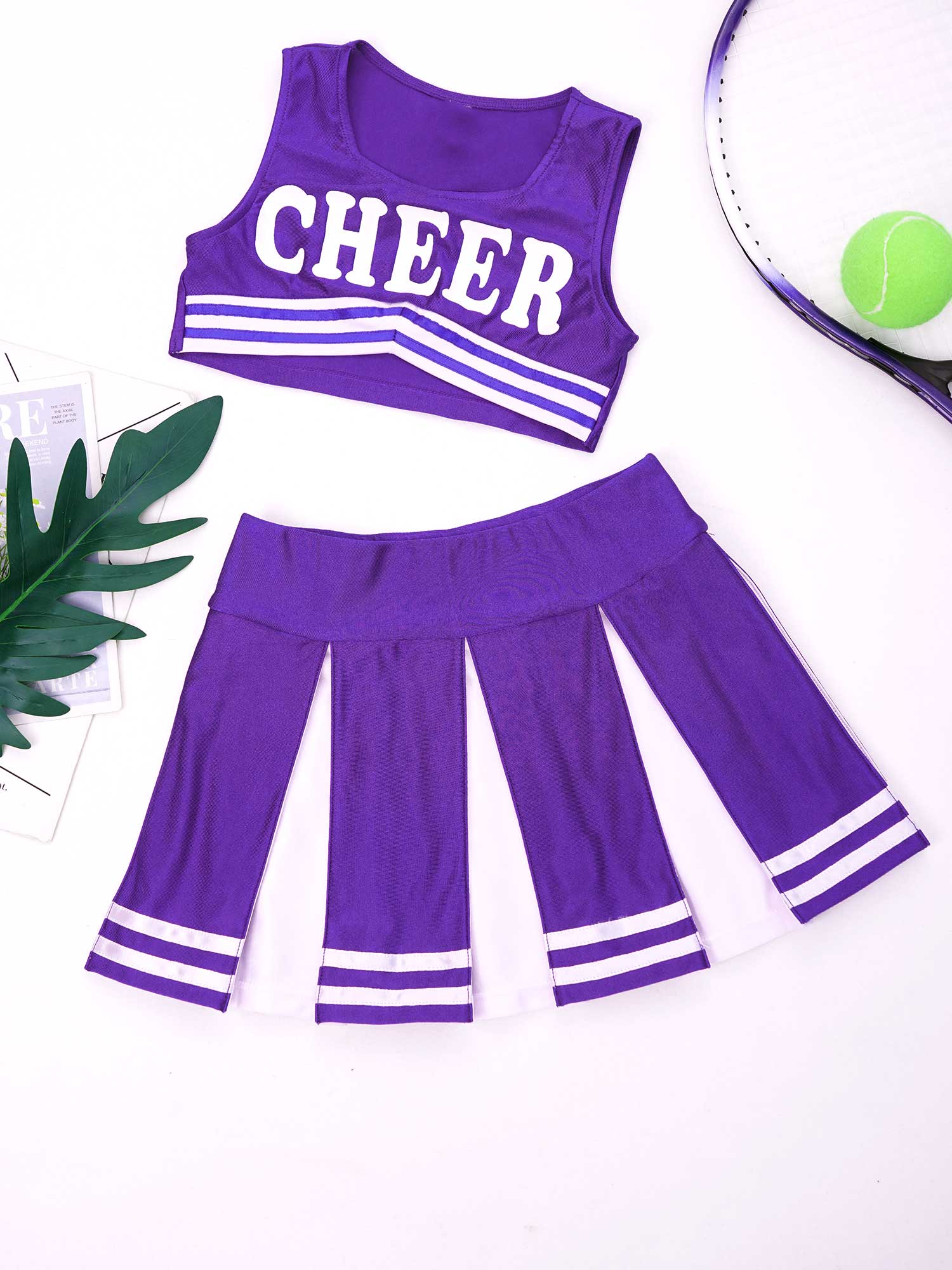 Детский комплект из 2 предметов для девочек, жилет без рукавов с буквенным принтом и плиссированная юбка, костюм для болельщиков.