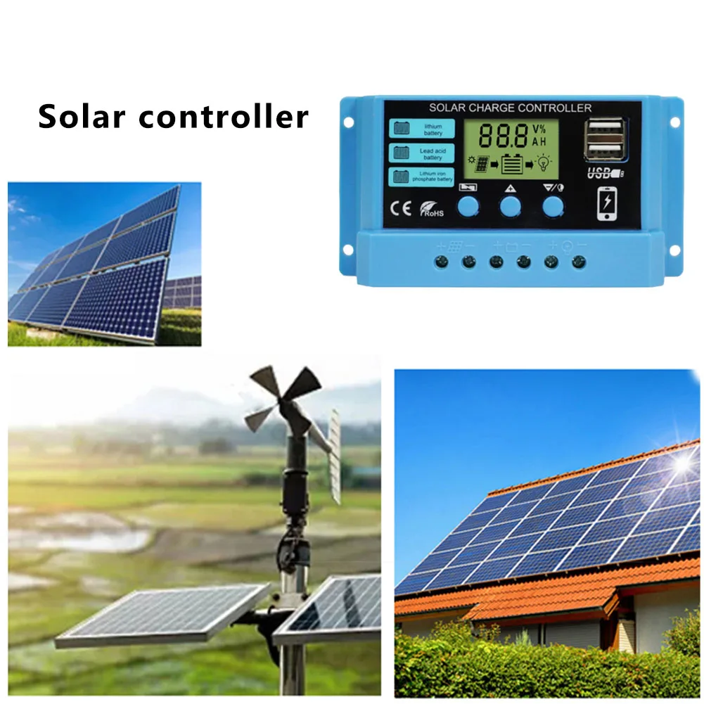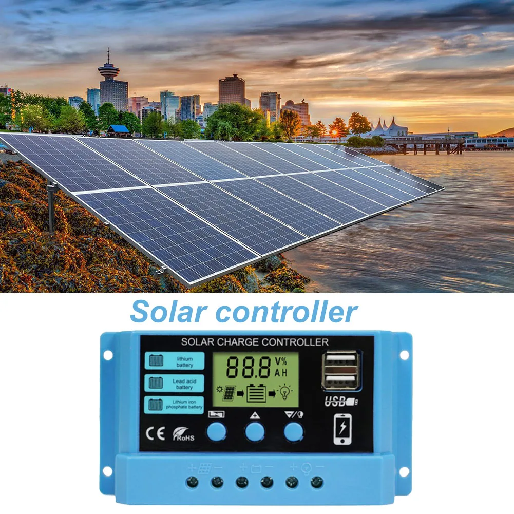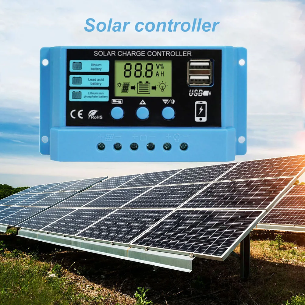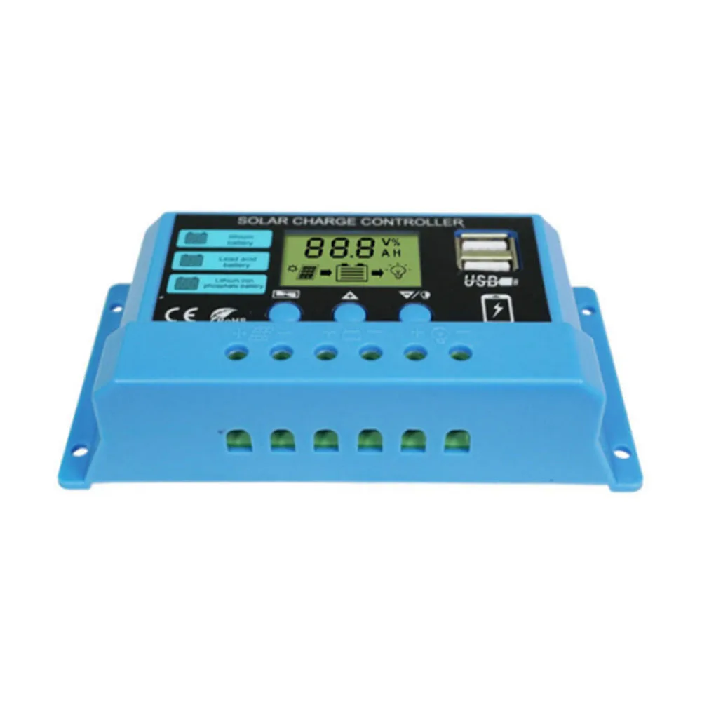 12 В 24 в контроллер солнечного зарядного устройства ШИМ 10A 20A 30A Двойной выход USB ЖК-цифровой дисплей Регулируемый регулятор солнечной батареи