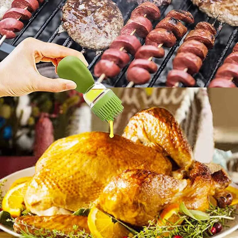 Новый дизайн: дизайн силиконового капельного фильтра и силиконовой щетки может принести вам много удобства для приготовления пищи. Стеклянный масляный бак с чехлом и крышкой позволяет точно налить и наносить масло.