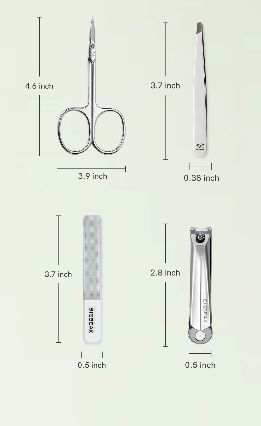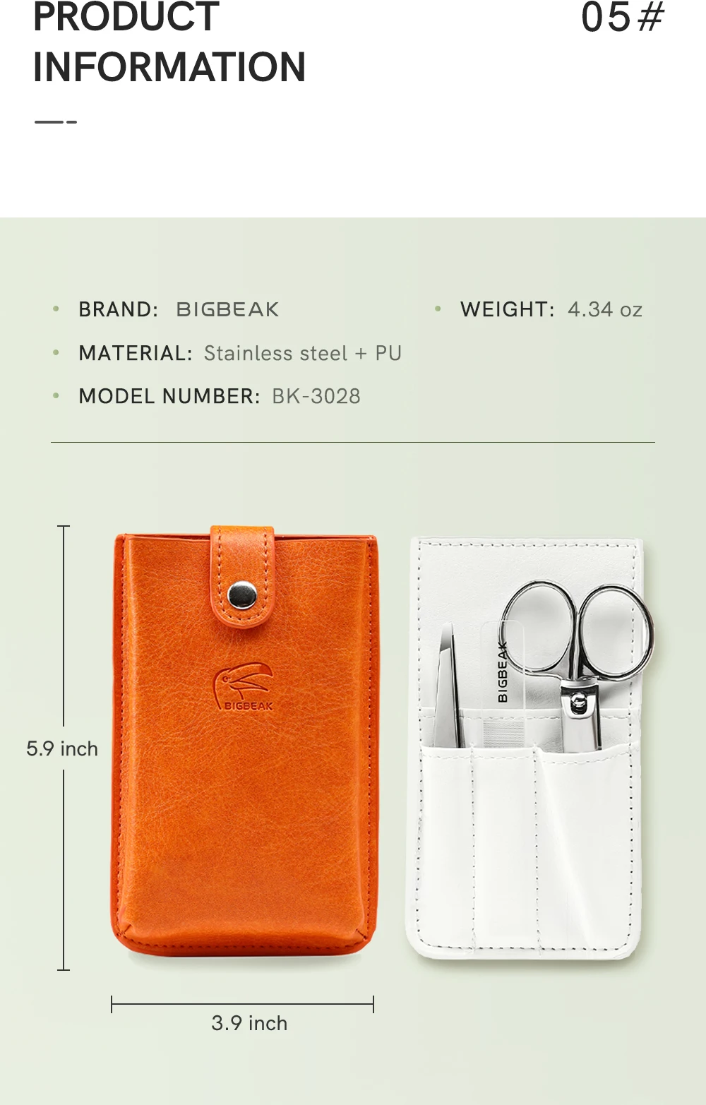 1. Оригинальная комбинация для удовлетворения различных потребностей. Оранжевый: кусачки для ногтей + пинцеты для бровей + ножницы для бровей + нано-стеклянная пилка; Темно-синий: кусачки для ногтей + пилочка для ногтей из нержавеющей стали + палочка для ушей + ножницы для носа.