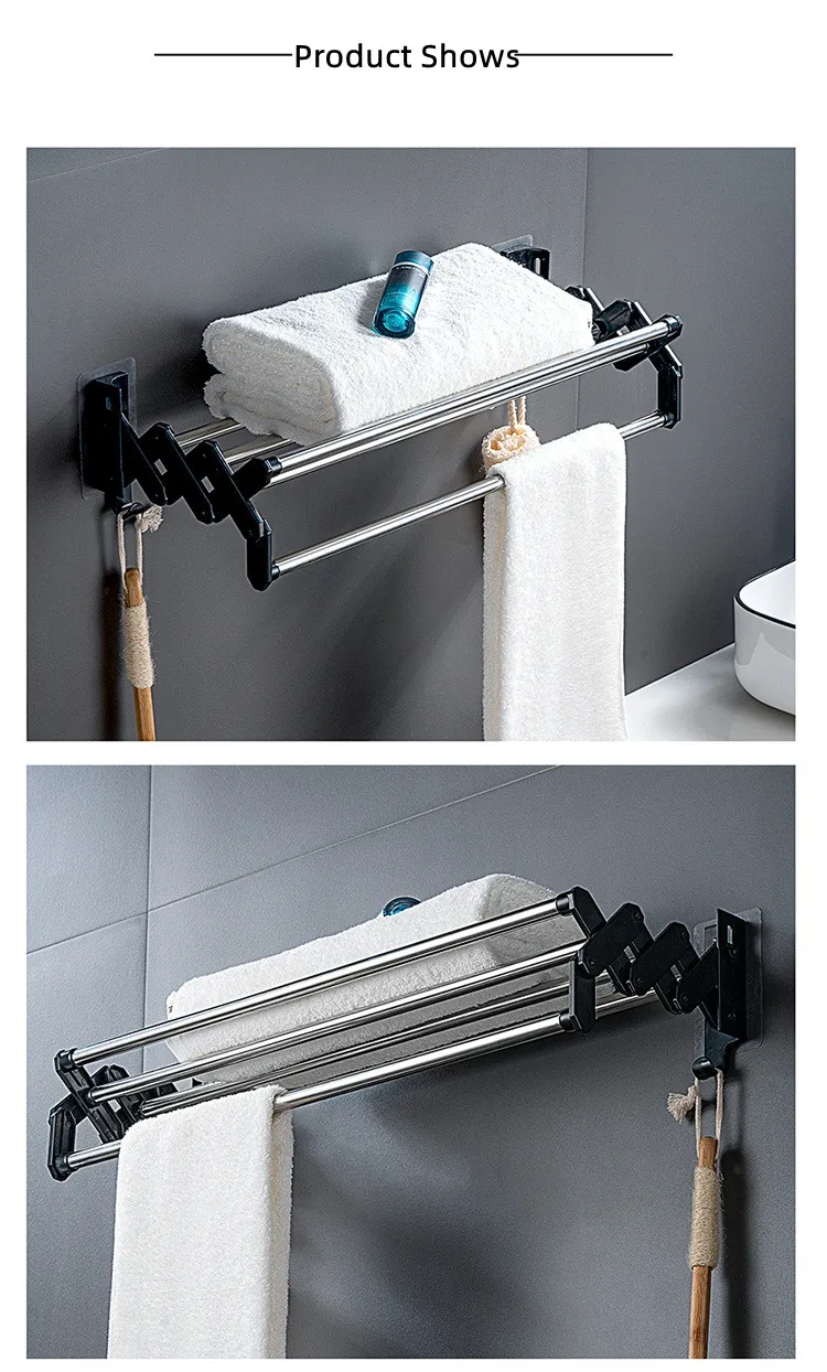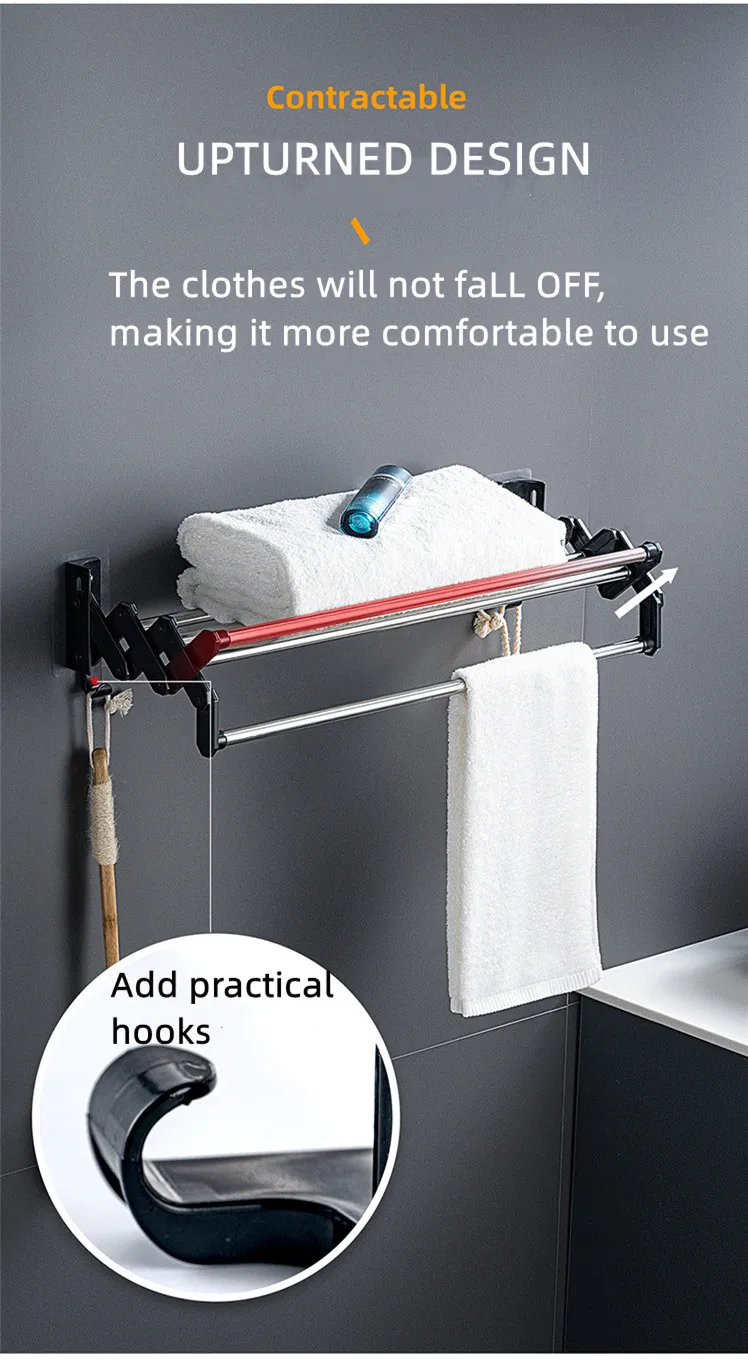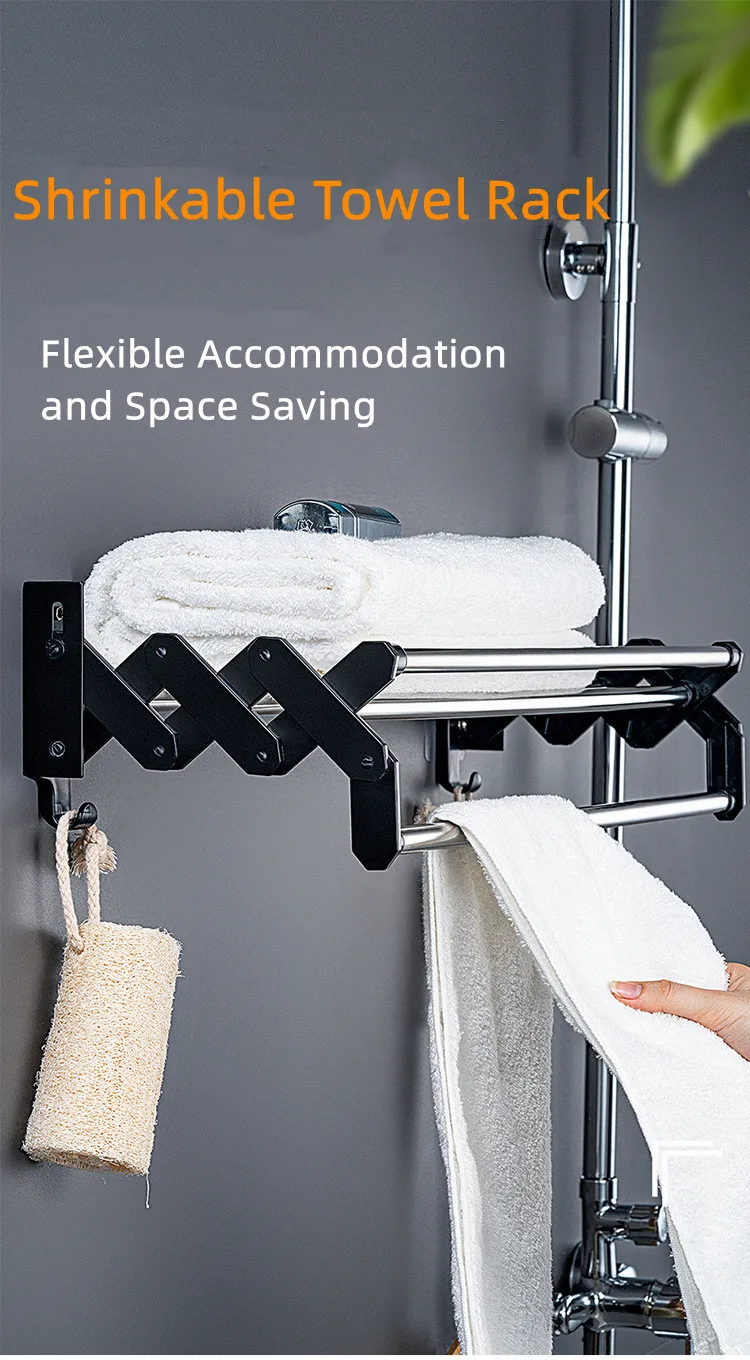 С выдвижной конструкцией, этот стеллаж для полотенец может использоваться более гибко, и пространство может быть разумно использовано, чтобы сохранить место чистым и аккуратным.