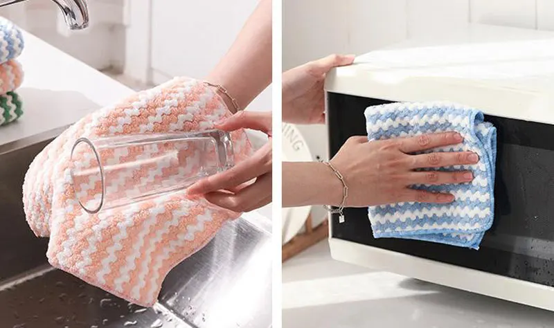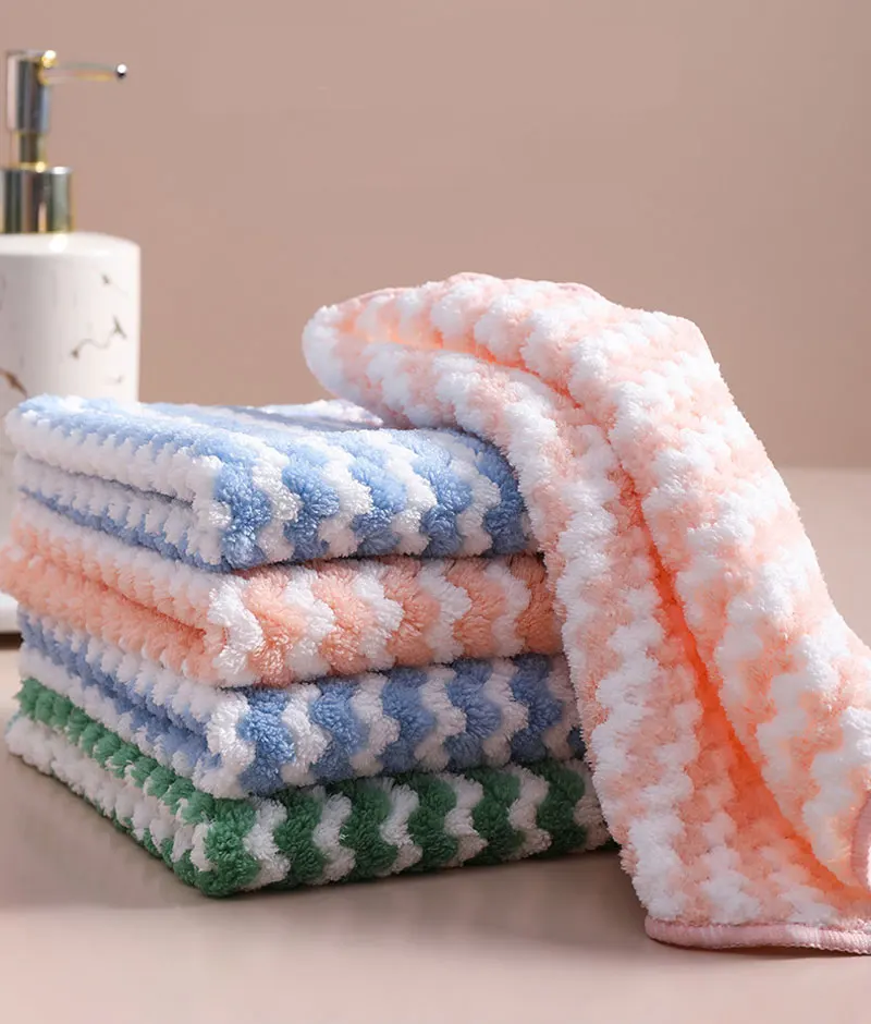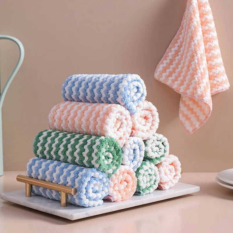 Полосатое полотенце для мытья посуды из кораллового флиса, впитывающая ткань, кухонные чашки для посуды, очищающая тряпичная губка
