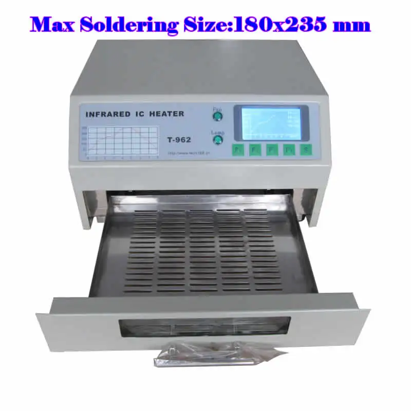 PUHUI T-962 инфракрасный IC НАГРЕВАТЕЛЬ T962 волновая печь с оплавлением 800 Вт паяльная машина 180x235 мм для BGA SMD SMT ремонтный набор для ремонта плат