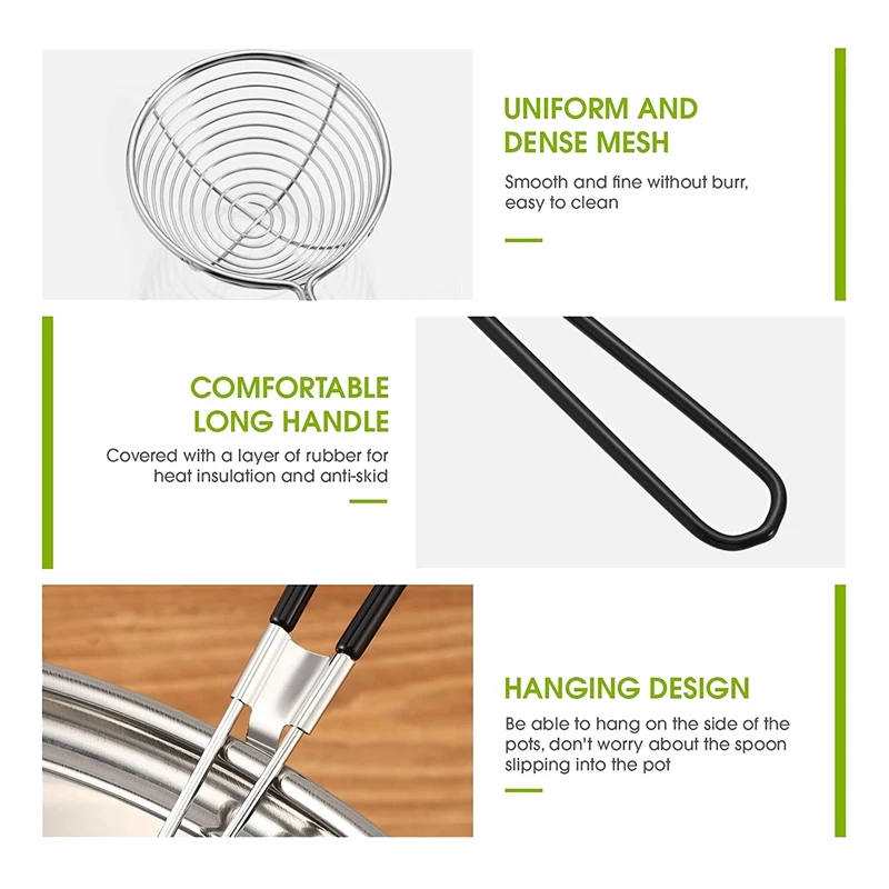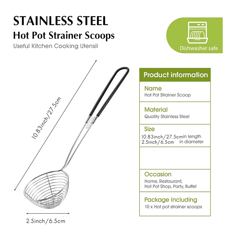 Дуршлаг-сито из нержавеющей стали, Проволочная скиммер ложка с ручкой для горячих кастрюль для супа слива и перламутровой пищи (10 шт.)