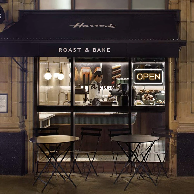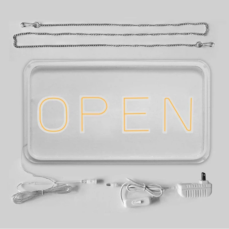 Этот светодиодный неоновый открытый знак для бизнеса изготовлен из высококачественного пластика, который обеспечивает Mitsubishi, высокая прозрачность до 98%. Он более прочный, чем вспененные доски на рынке. «Открытые» слова сделаны из силиконовой трубки вручную, антивозрастной, антиокислительный, долгое время не меняет цвет, может оставаться на солнце в течение длительного времени.