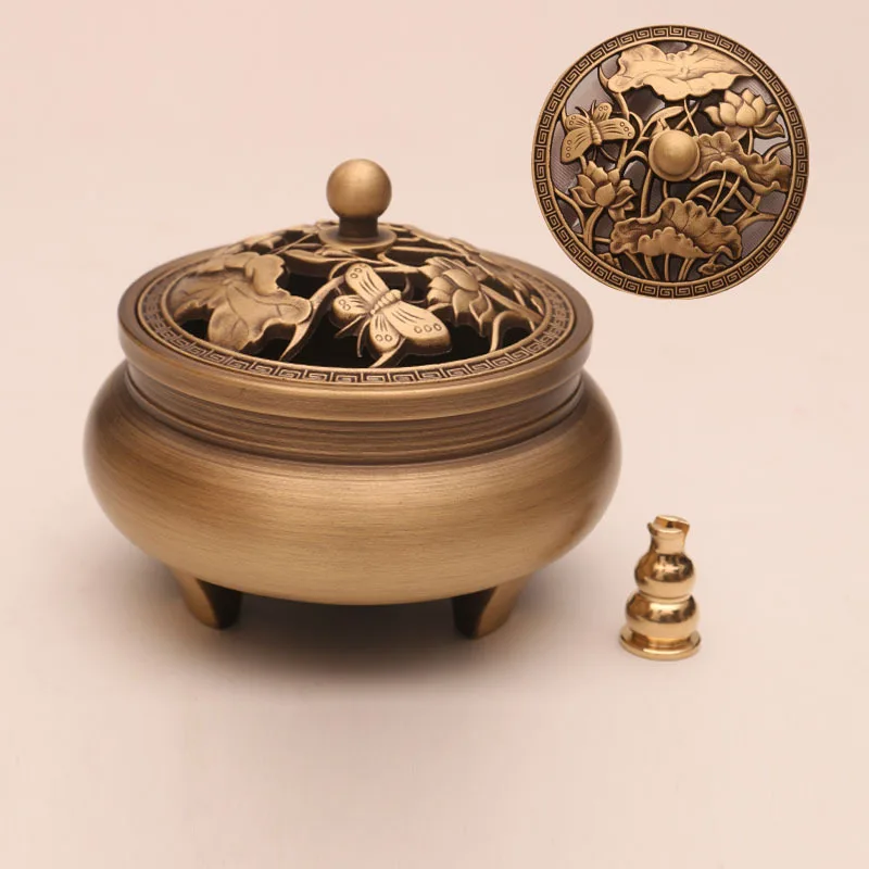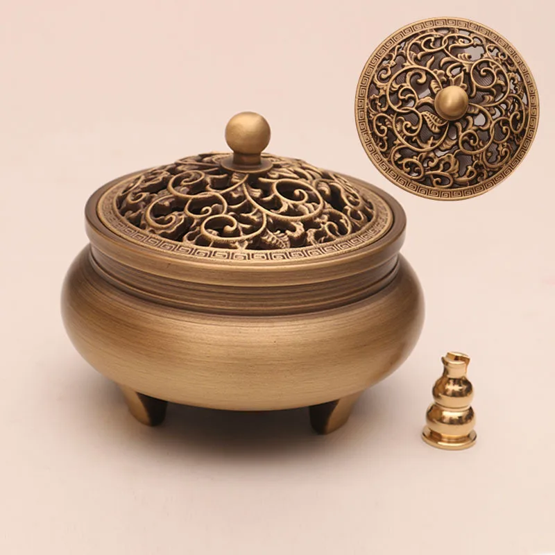 Классическая антикварная трехногая ароматическая горелка из чистой меди домашняя декоративная Zen вырезка из сандалового дерева благовония горелка