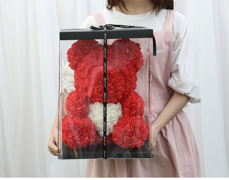40 см пенная Роза медведь с коробкой роза искусственный цветок подарок для подружек мать жена подарок на день Святого Валентина домашний декор