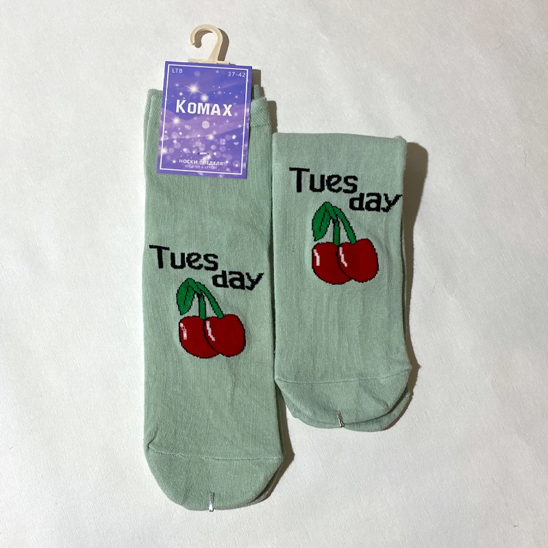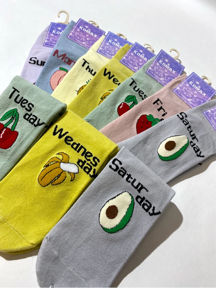С популярным принтом авокадо, банан, арбуза, вишня, персик, ананас, клубника и названия дней недели.