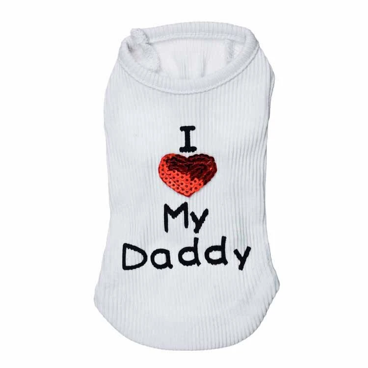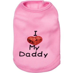 Футболка для собак футболка с надписью «I Love Daddy Mommy Pet» жилетка одежда с блестками и сердечками для щенков Мягкий Вязаный ребристый наряд для маленьких средних собак