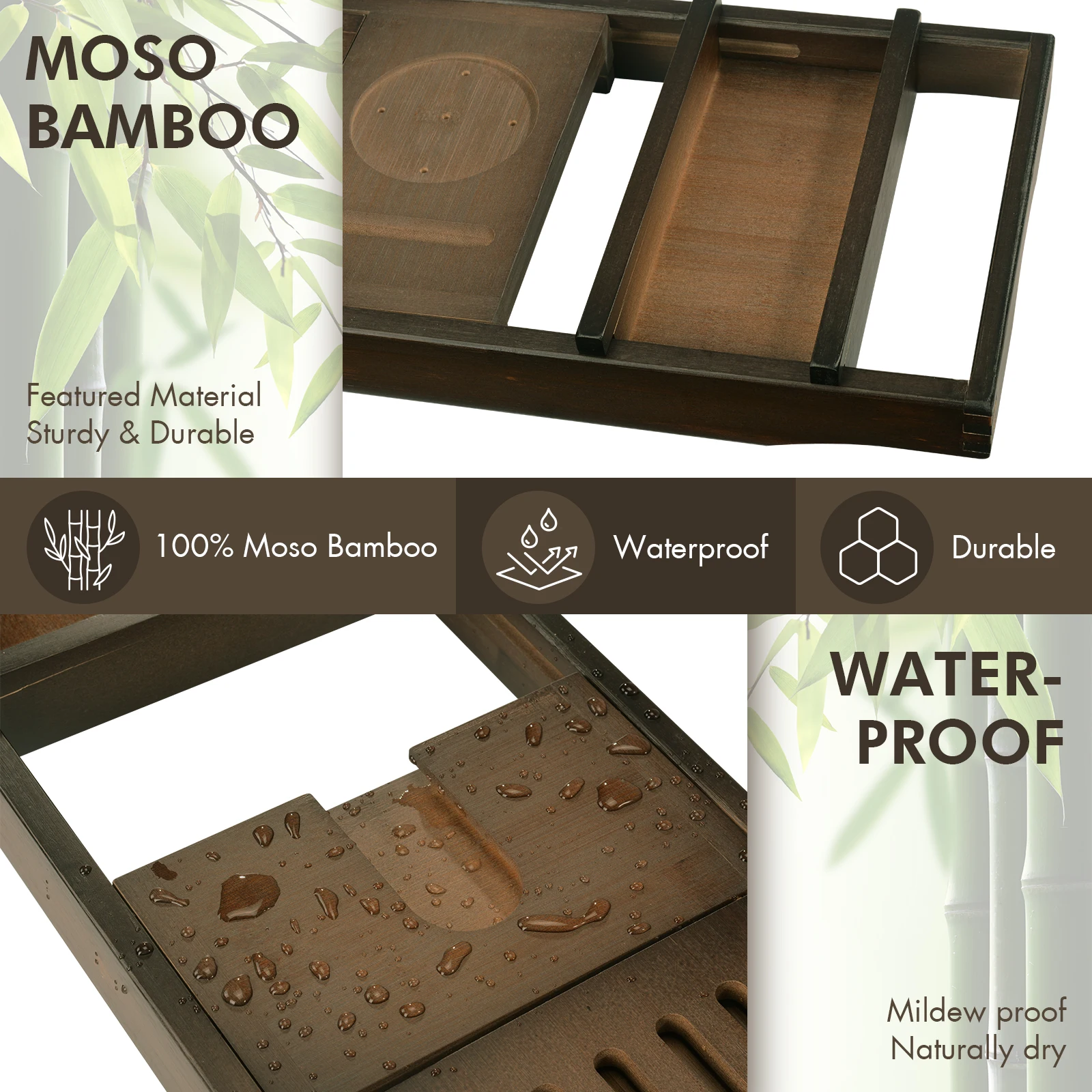 Этот уникальный поднос для ванной изготовлен из 100% древесины высочайшего качества и хорошо сделан и прочнее, чем традиционная древесина. Поверхность лотка отшлифована, поверхность очень гладкая и не повредит руку. С водонепроницаемым дизайном, поэтому вода и влага не проникают в дно дерева, не нужно беспокоиться о том, что лоток для ванны будет плесени-таким образом, Максимальная прочность