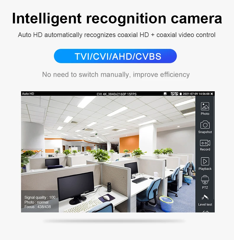 5. Обновление коаксиального HD 4,0, TVI/CVI/AHD 8MP тест изображения, TVI5.0 поддерживает камеру коаксиального аудио теста. (Только IPC-1910 поддерживает эту функцию)