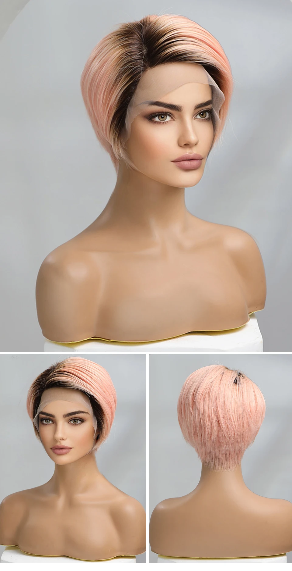 Парик из пастельных и розовых волос для волос, цвет Омбре, боковая часть 13x1, фронтальный парик, волосы Remy, термостойкие кружевные парики для женщин, на каждый день