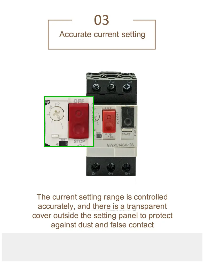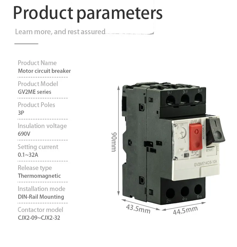 Бесплатная доставка GV2ME переключатель защиты двигателя от перегрузки теплового магнитного типа защита от короткого замыкания автоматический выключатель MPCBАвтоматический выключатель двигателя переменного тока GV2ME применим к цепи с напряжением переменного тока до 690 В и током до 32А. Он может использоваться как защита от перегрузки, открытой фазы и короткого замыкания и нечасто запускаемый контроль трехфазного асинхронного двигателя клетки белки. Он может быть использован в качестве защиты распределительной линии, нечасто преобразования нагрузки и изолятор. Этот продукт соответствует GB / t14048 2, GB/T14048. 4 стандарта.