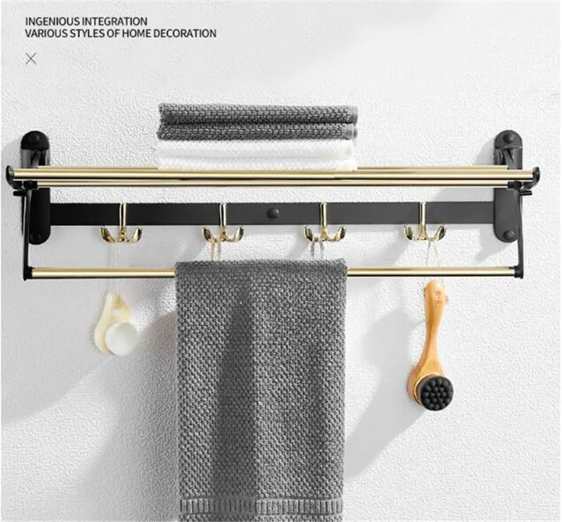Bathroom Towel Rack Brass 60 cm Folding Gold Towel Holder Foldable Black Fixed Bath Towel Holder Bath Shelves Towel Rail