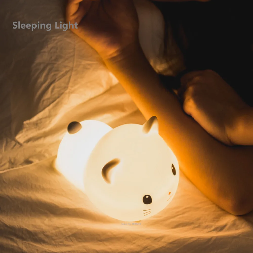 Силиконовый Кот светодиодный Ночной светильник сенсорный Сенсор 2 Цвета затемнения таймер Перезаряжаемые спальни ночники для детей Дети Подарок для ребенка