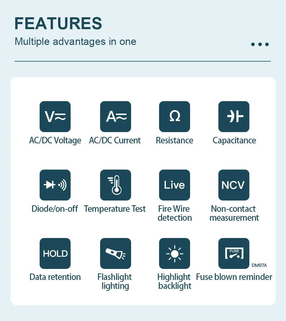 DM97A 9999 отсчетов умный Профессиональный цифровой мультиметр автоматический диапазон переменного тока постоянного напряжения тока Ом Гц большой экран истинная температура RMS Teste