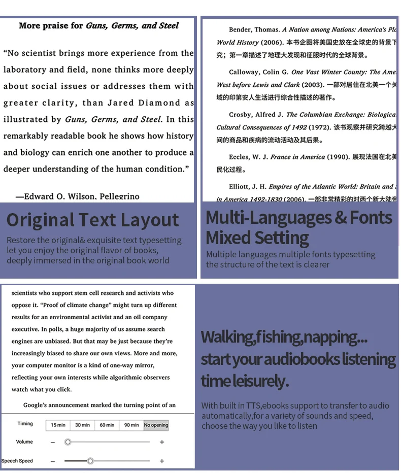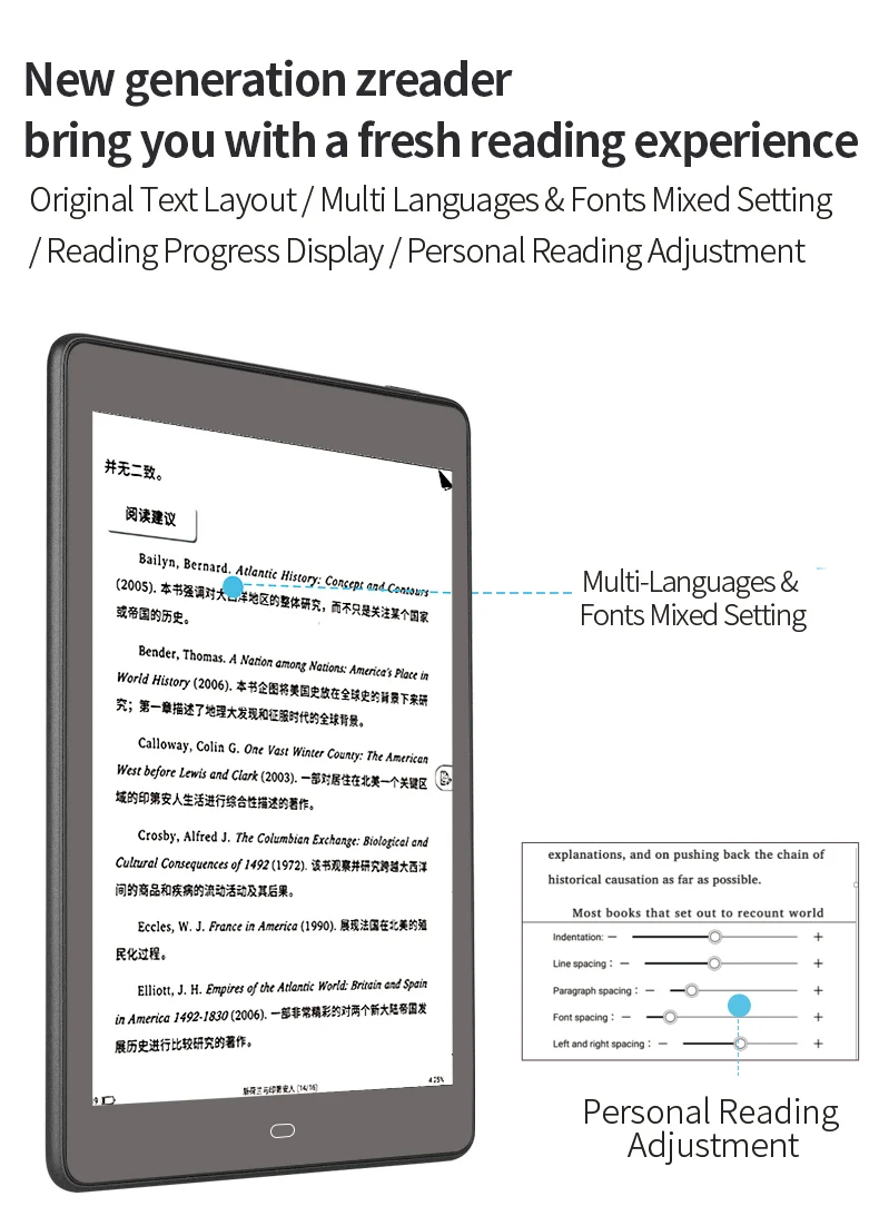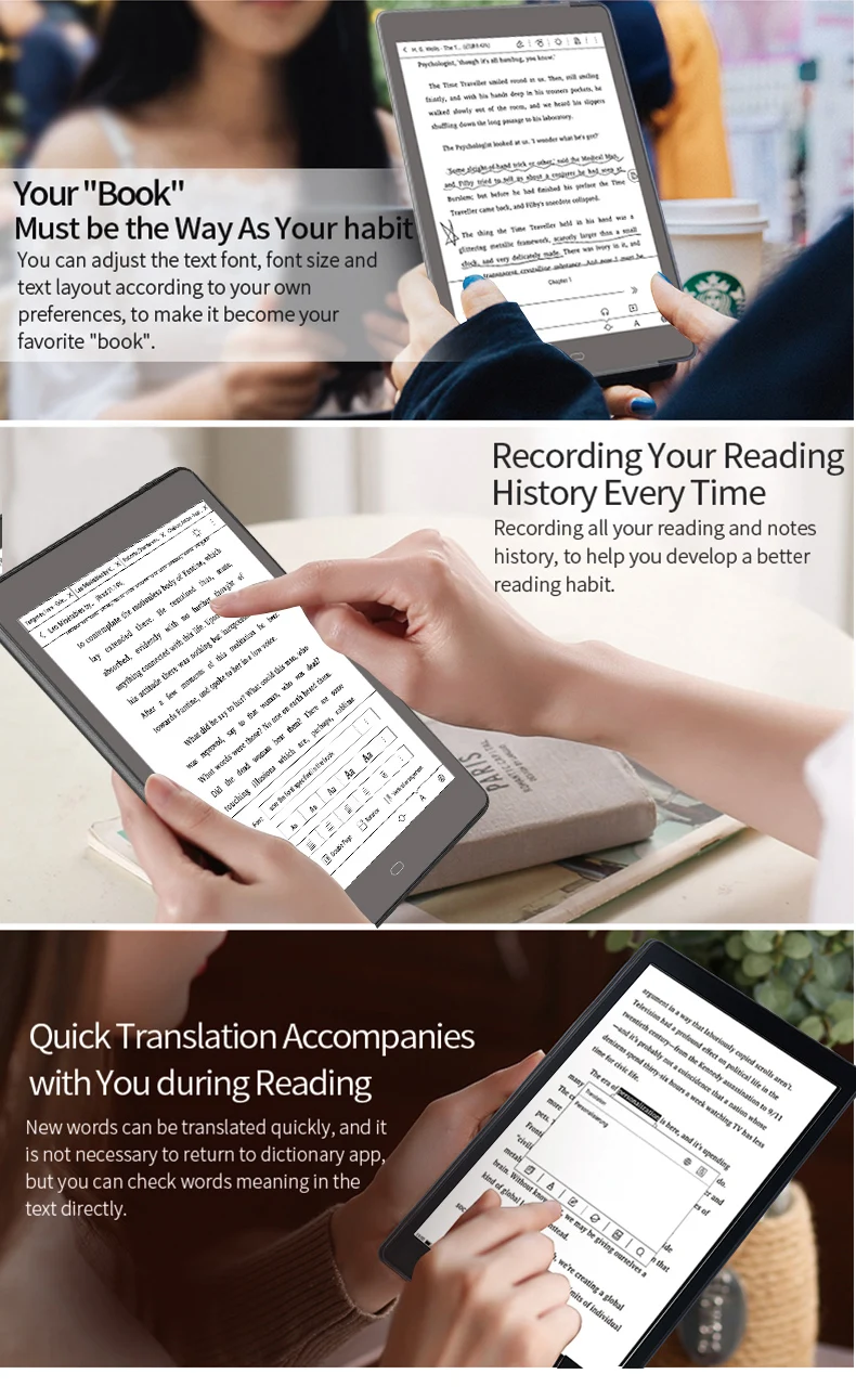 3.the firmware support open CBZ, CBR, Djvu, AZW3 fromat directly, support user change the fonts and screensaver by yourself,