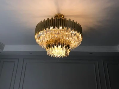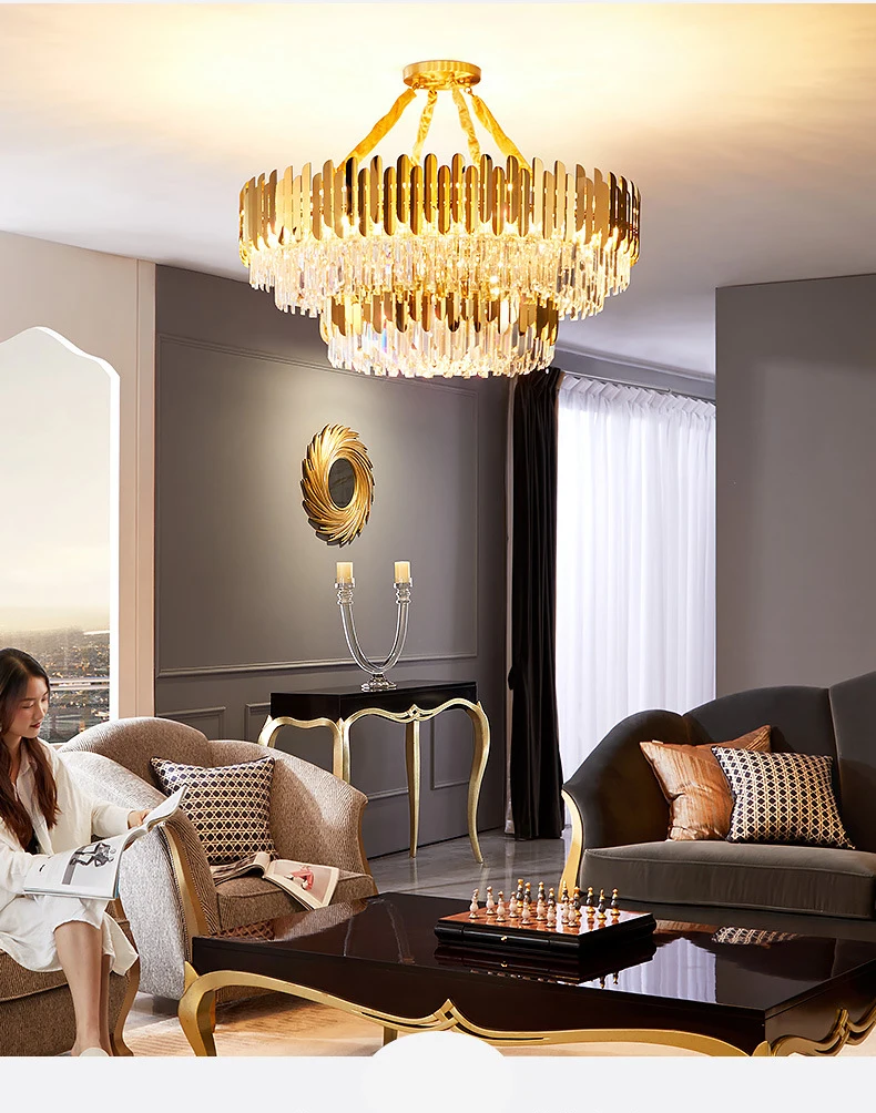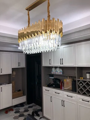 Арт-деко Современная хрустальная Золотая люстра из нержавеющей стали, люстры, подвесные лампы для фойе столовой