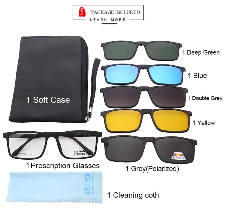 Индивидуальные очки унисекс по рецепту с 5 зажимами на солнцезащитных очках