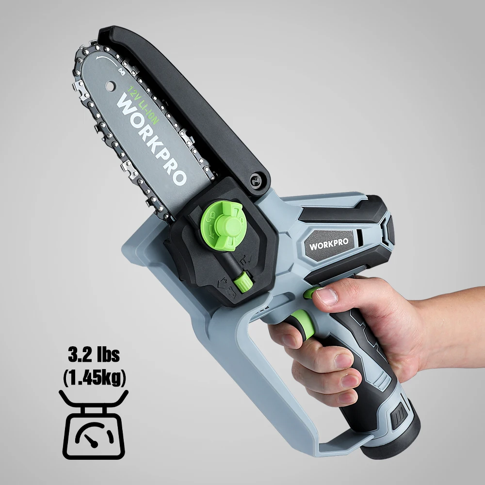 Беспроводные функции Мини-бензопила с безопасным выключателем блокировки для обеспечения более безопасной и стабильной работы цепи. 100 ° вращающийся предохранитель лезвия будет двигаться вверх по мере резки, он может защитить вас от подпрыгивания при попадании опилок или грязи. В то время как прорезиненная ручка делает вас более удобными для удержания и легче контролировать, добиться сбалансированного с высокой производительностью резания. Кроме того, наша мини-пила снабжена переключателем безопасности для защиты от случайных запусков для обеспечения безопасности.