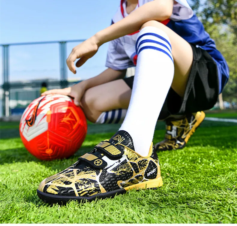 Модные розовые детские дешевые футбольные Туфли на липучке для мальчиков и девочек, тренировочные футбольные бутсы, детские футбольные бутсы, спортивные кроссовки