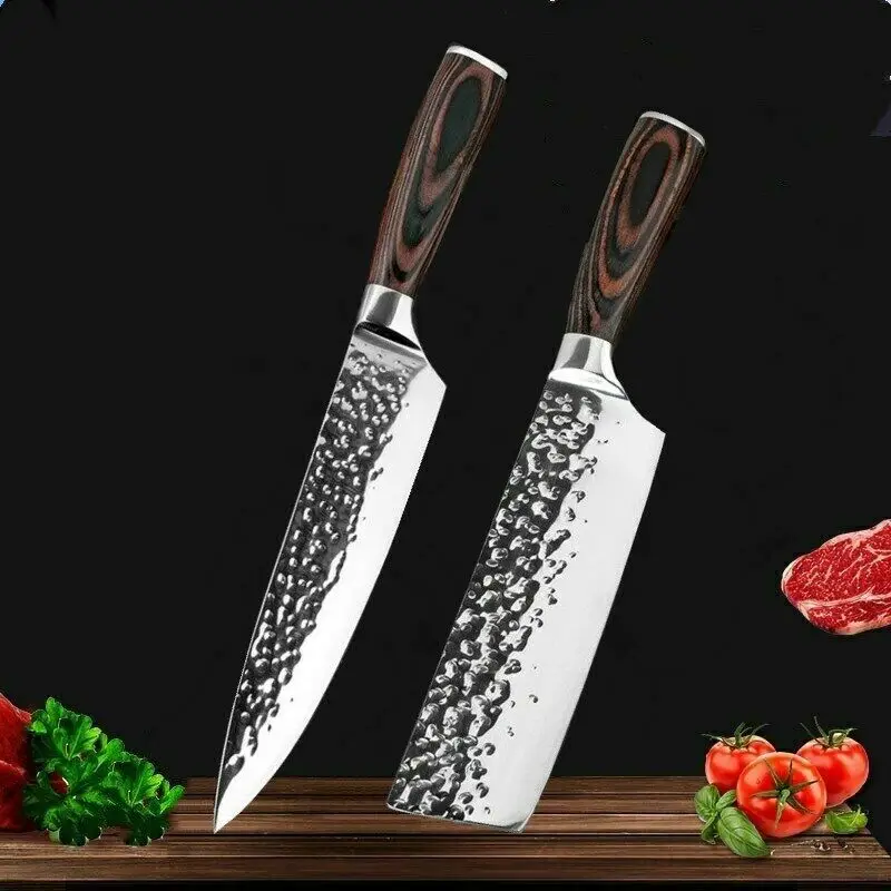 2 шт. набор кухонных ножей из нержавеющей стали кованые кухонные ножи ручной работы японский дамасский лазерный узор острые лезвия инструменты для приготовления пищи