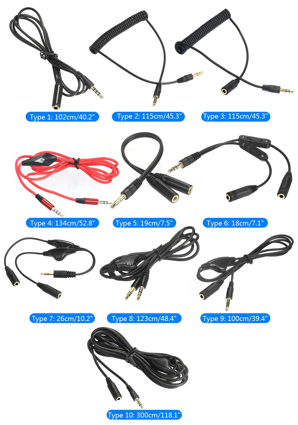 Тип 7 (переменного тока 3-полюсный, Y сплиттер с регулятором громкости колесо): 26 см/10,2"