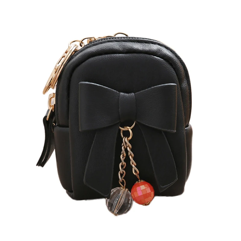 Мини-рюкзак для монет, брелок для ключей, Модный женский маленький кошелек с галстуком-бабочкой, брелки, кошельки, милые наушники из искусственной кожи, сумочка для ключей