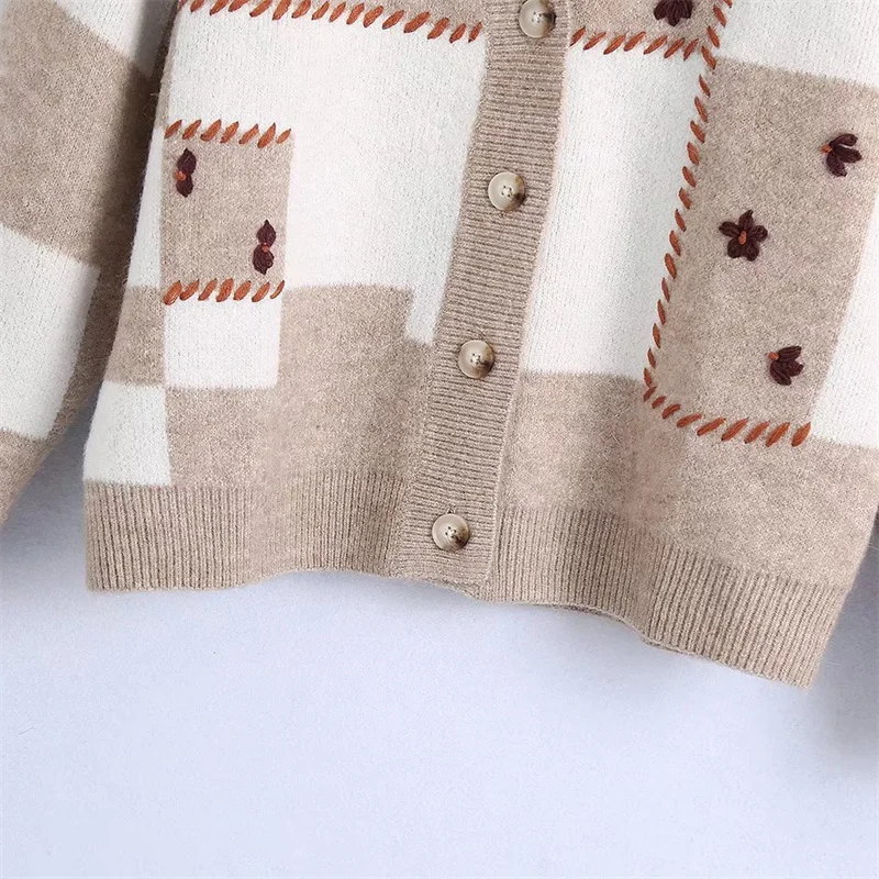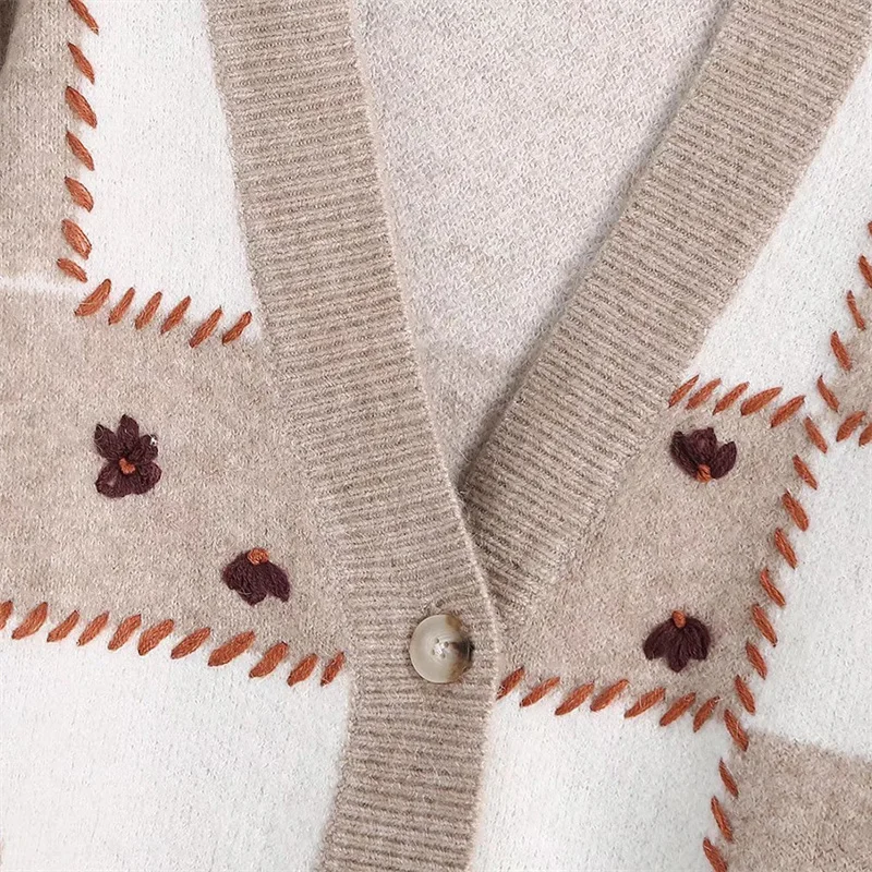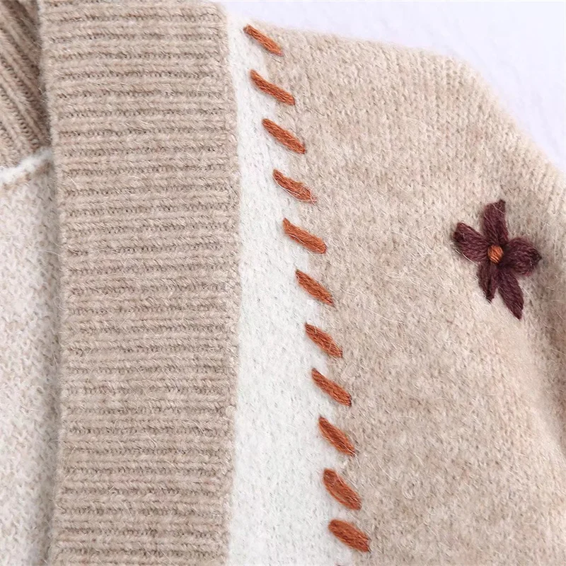 Женский элегантный верблюжий вязаный кардиган с v-образным вырезом, осень 2021, модные женские кардиганы с длинным рукавом, Женская Повседневная вязаная одежда с цветочным рисунком