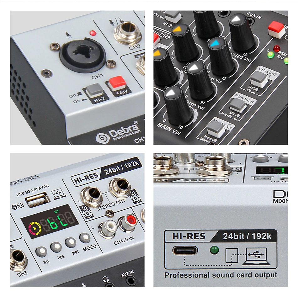 Предусмотрен микрофон, электрогитара, Бэт и др., используется для емкостных микрофонов + 48В источника питания, профессиональная звуковая карта выход постоянного тока до PC для записи, С лучшим качеством звука 24 бит/192 кГц.