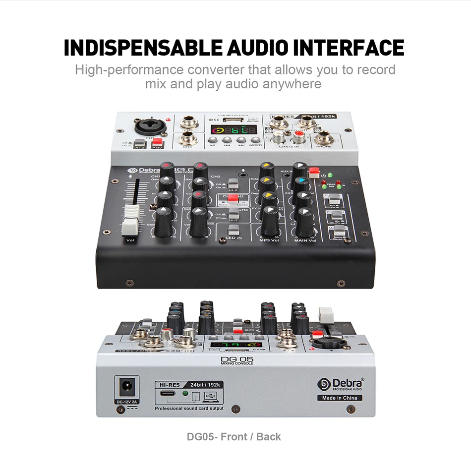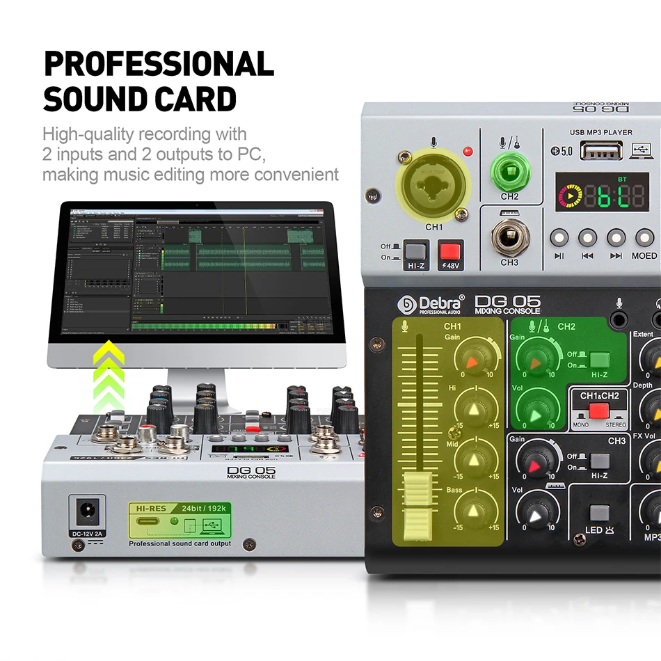 Debra DG-05 профессиональный аудио интерфейс звуковая карта с портом мониторинга, качество студии 24Bit 192K, 5,0 Bluetooth, используется для студийной записи, записи в реальном времени, студии, пения.