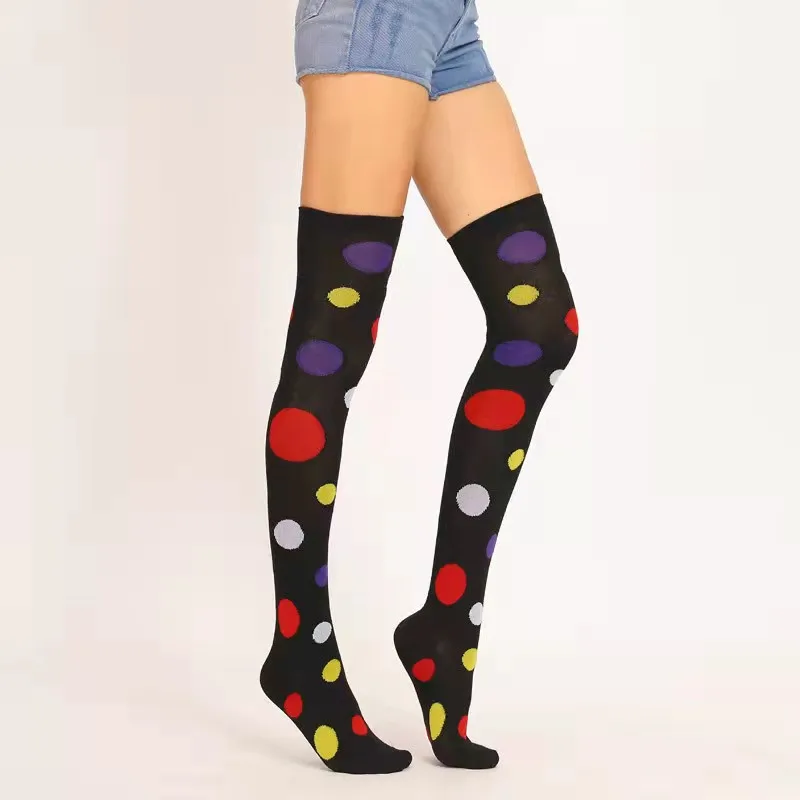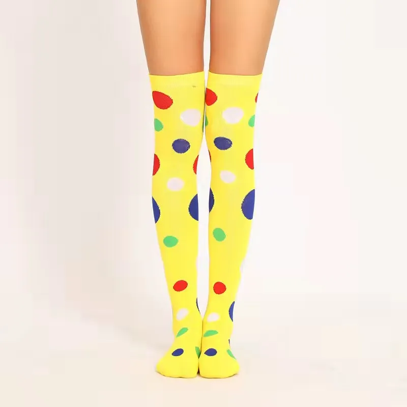 Новинка; Женские длинные носки для костюмированной вечеринки с изображением клоуна; Забавные разноцветные гольфы в горошек; Гольфы для девочек