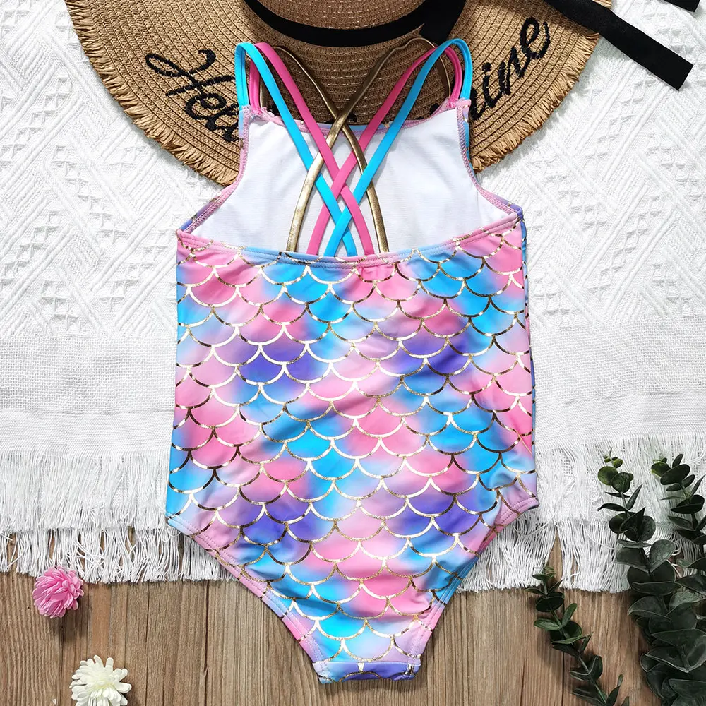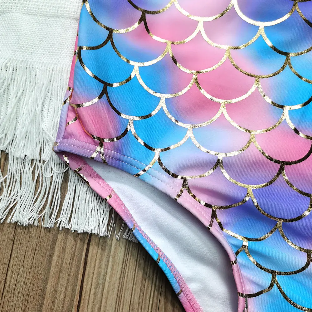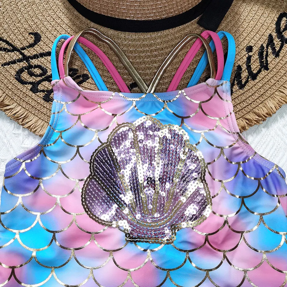 Цельнокроеный купальник с блестками для девочек, От 5 до 14 лет, с рисунком рыбьей чешуи, детский купальник с блестками, Teena, купальный костюм, пляжная одежда, 2022