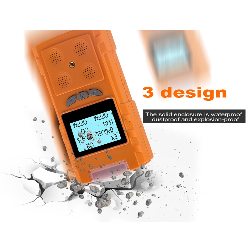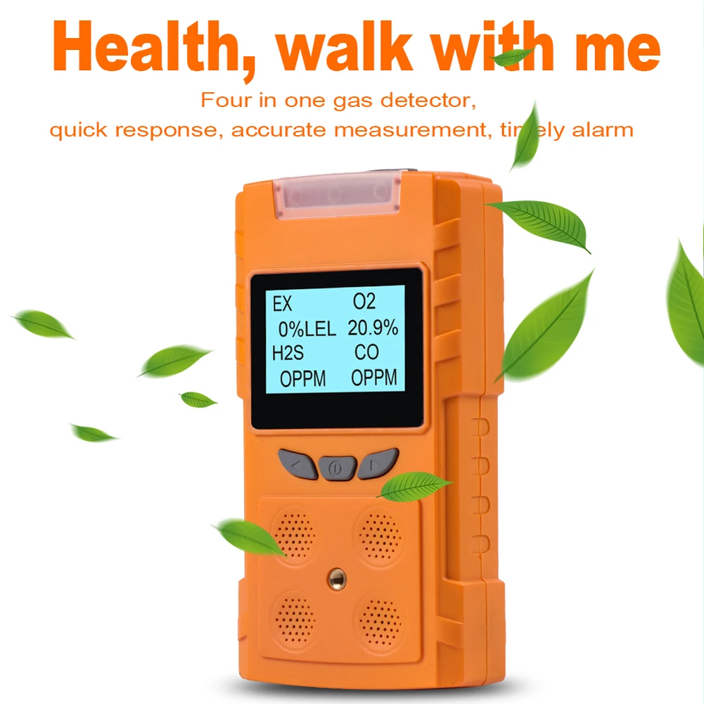 4 в 1 детектор газов:Этот детектор газов может контролироватьОкиси углерода, H2S, O2 и горючих газов одновременно.