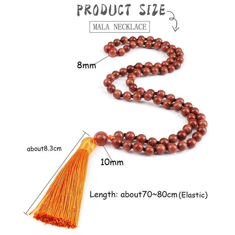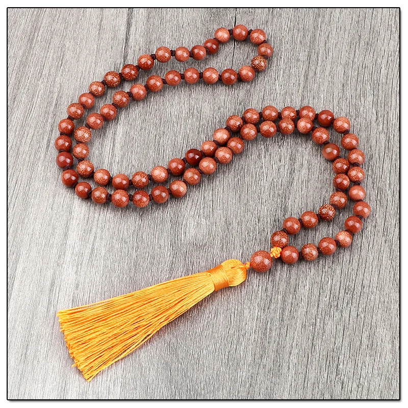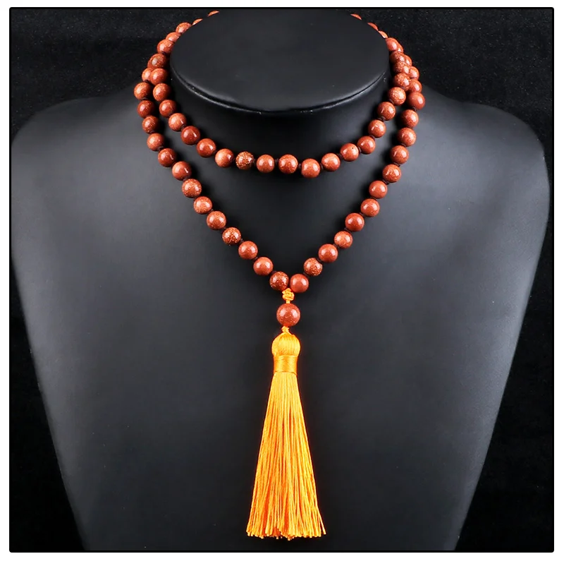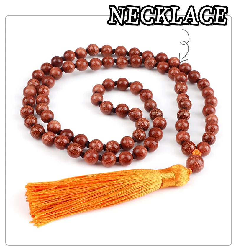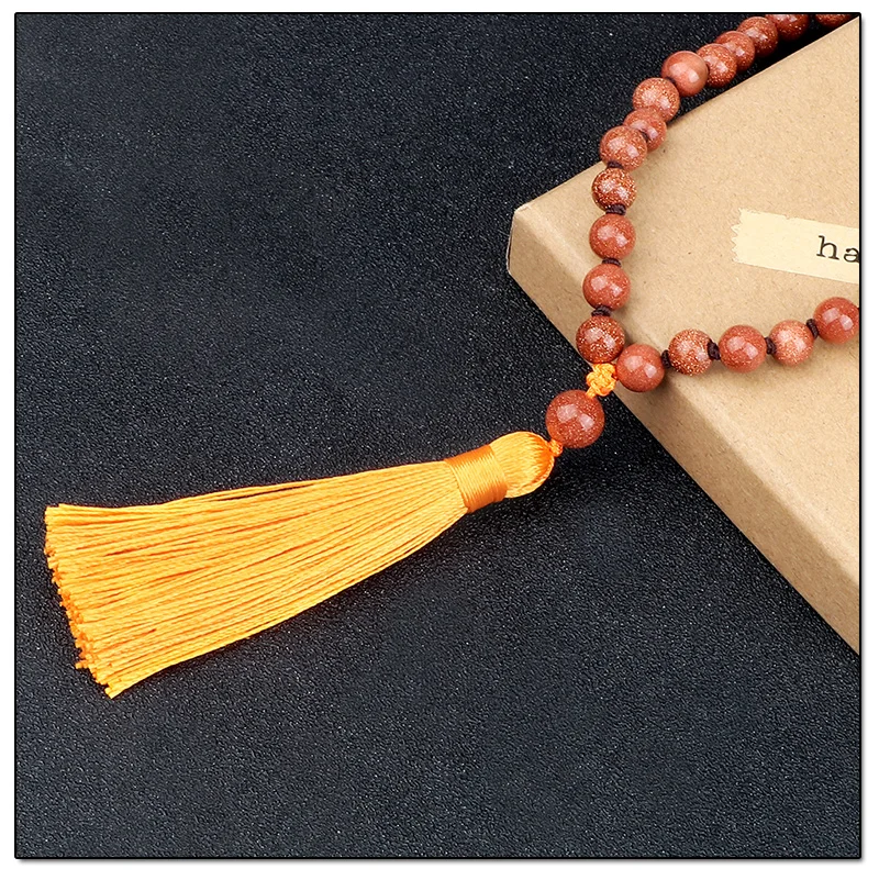 Винтажное мужское ожерелье золотого песчаника Mala бусы с узлом японская кисточка Очаровательное ожерелье для женщин медитация Йога Энергия ювелирные изделия