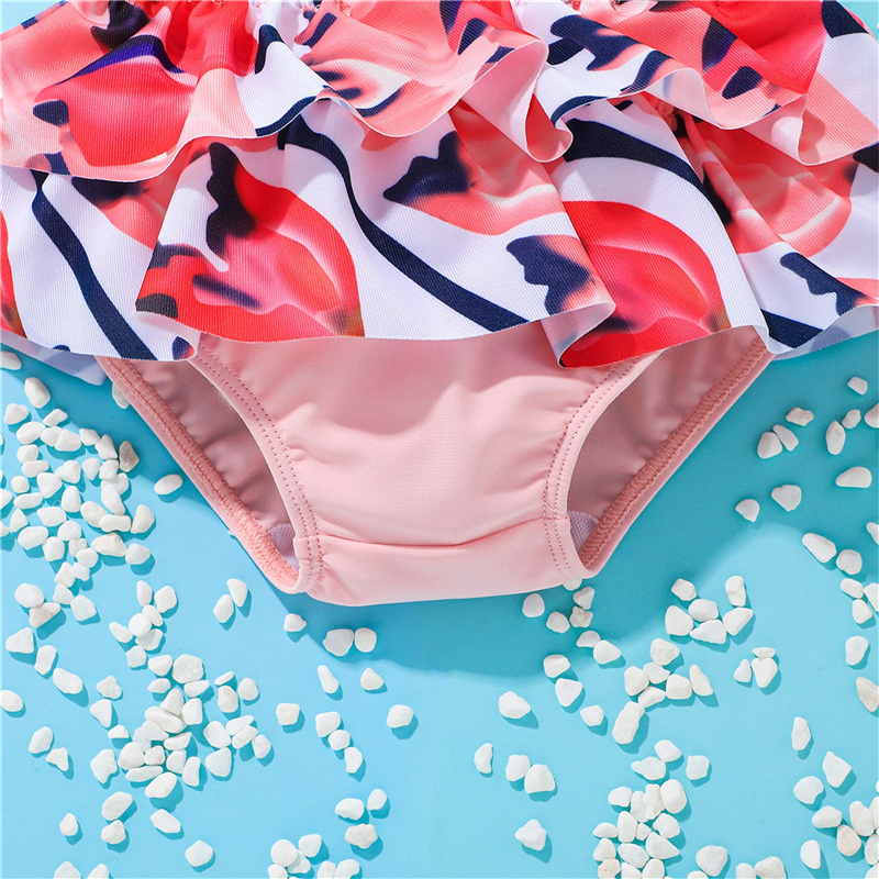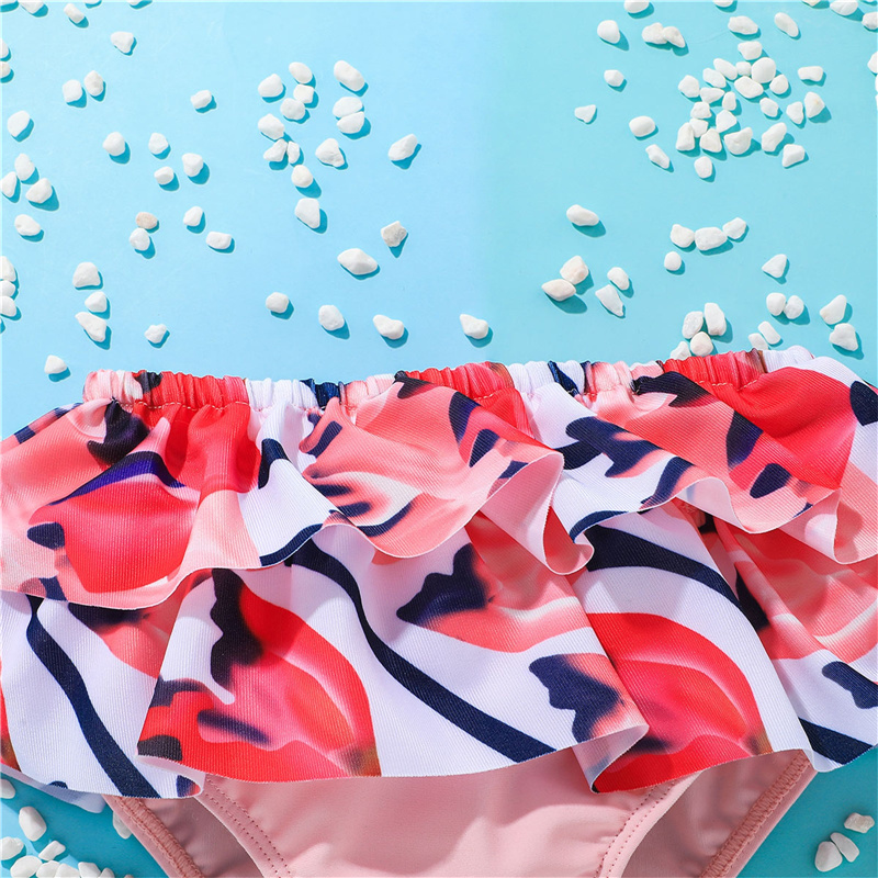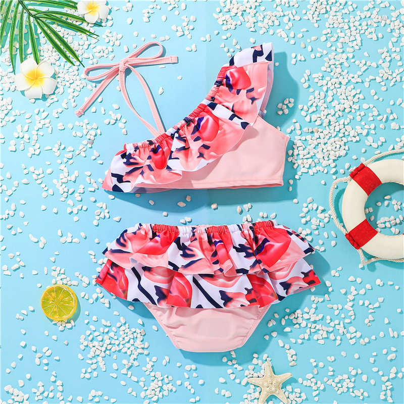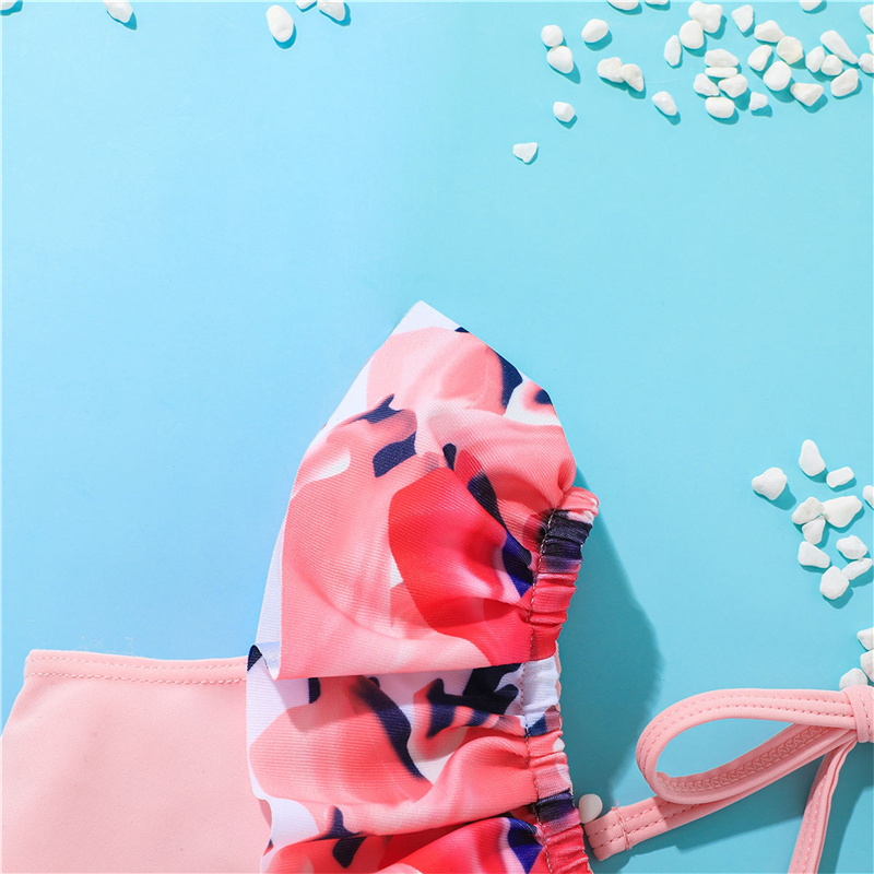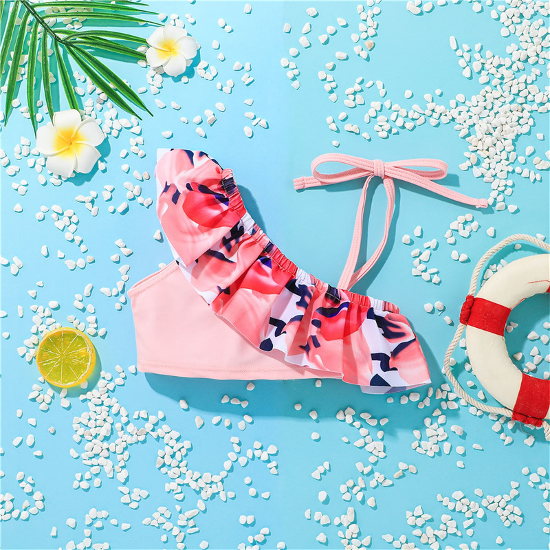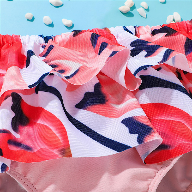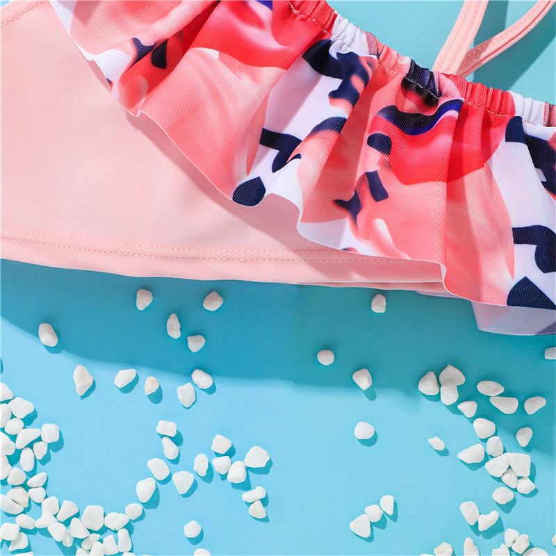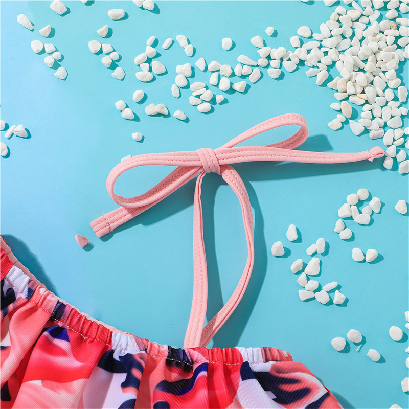 Детское бикини для девочек; Бюстгальтер без рукавов с цветочным рисунком и подвесным вырезом; Купальный летний пляжный купальник-стринги