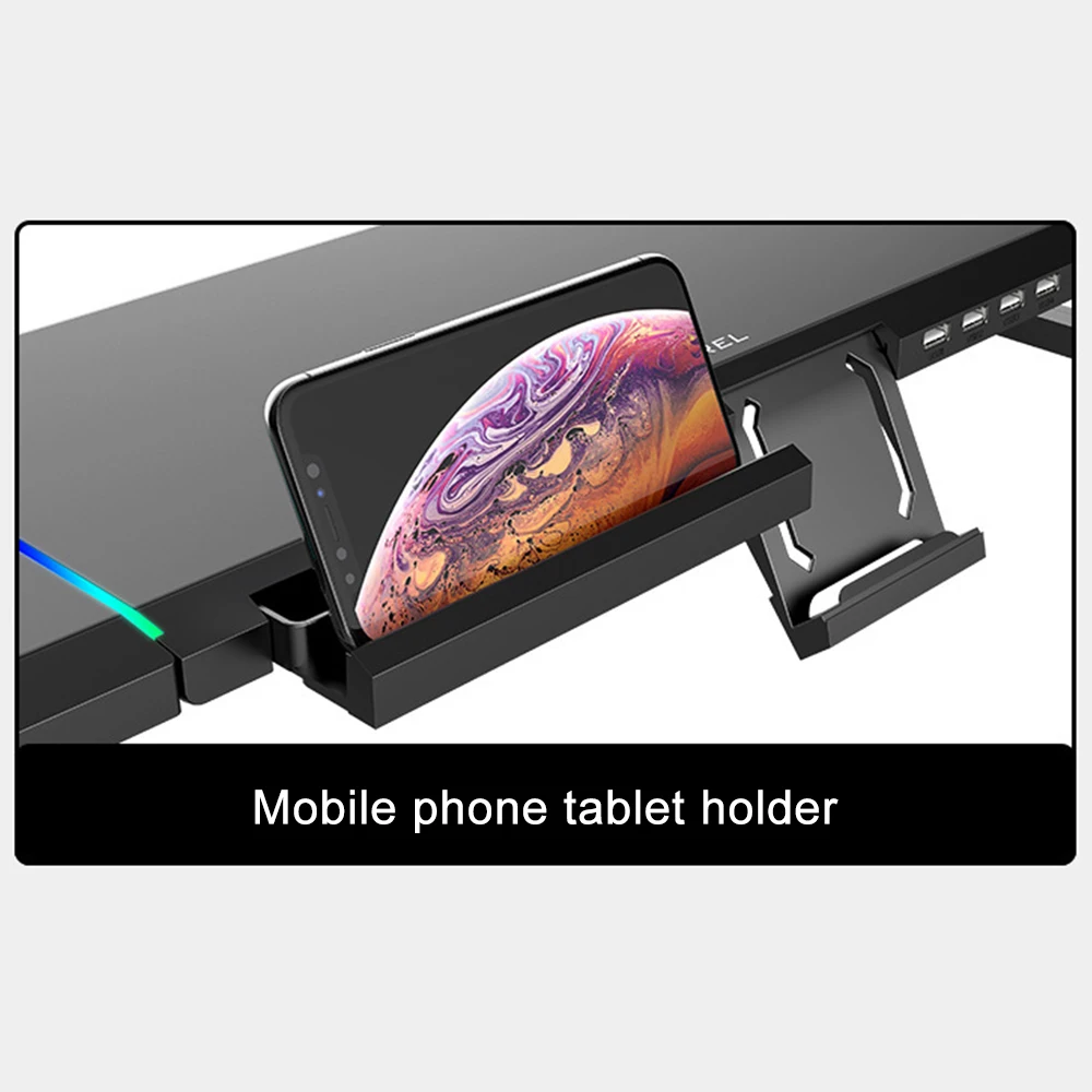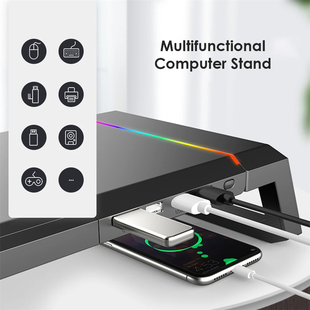 1. Многофункциональный кронштейн: увеличенный угол обзора, хранение настольного компьютера, двухсторонний складывающийся, Кронштейн для мобильного телефона, цветная (rgb Освещение, интерфейс расширения.