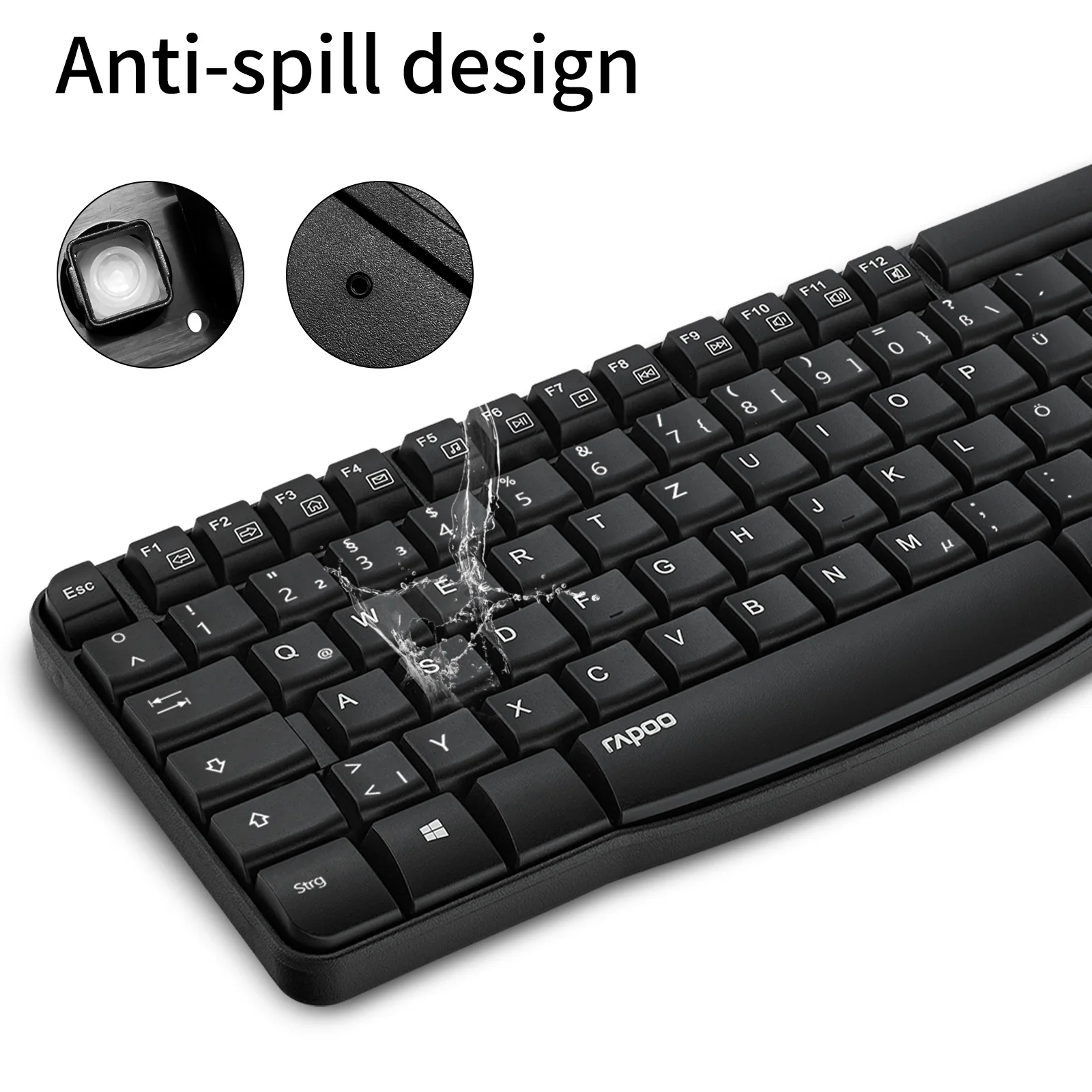 Беспроводная клавиатура Rapoo E1050 2,4 GHz с защитой от разлива для ПК, ноутбуков, настольных планшетов, английская/Немецкая раскладка