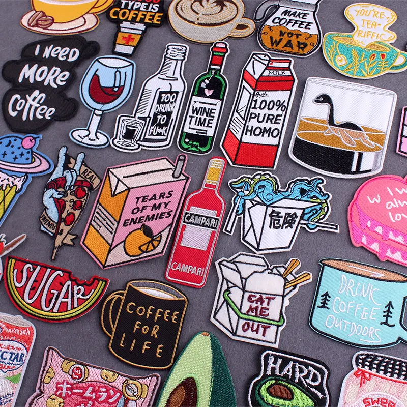 Вышитые нашивки Кофе напитки патч одежда термоклейкие патчи на одежде мультфильм еда железо на патчи для декора одежды